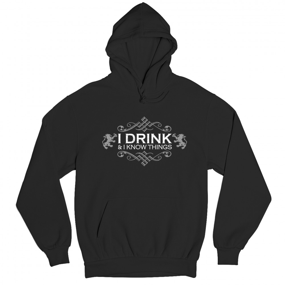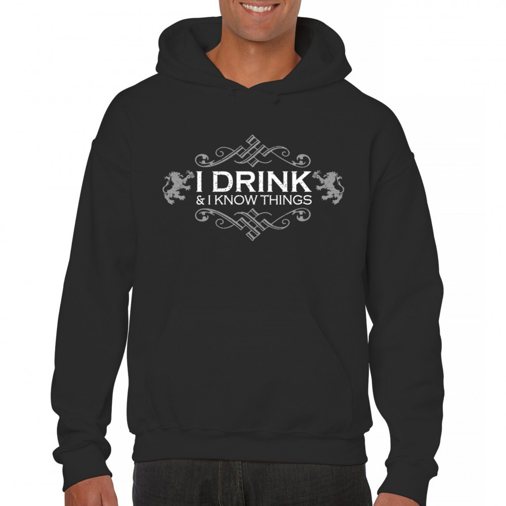 Show off your wit with the “I Drink and I Know Things” design, styled with medieval scrollwork and regal lions. Whether you're holding a pint at the bar, leading trivia night, or binge-watching fantasy series, this bold and funny piece is made for those who love drinking, sarcasm, and clever quotes with timeless flair.