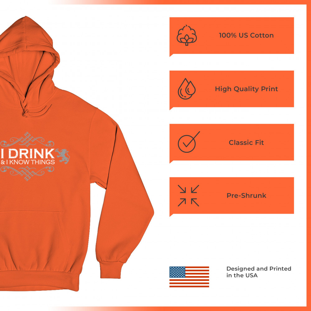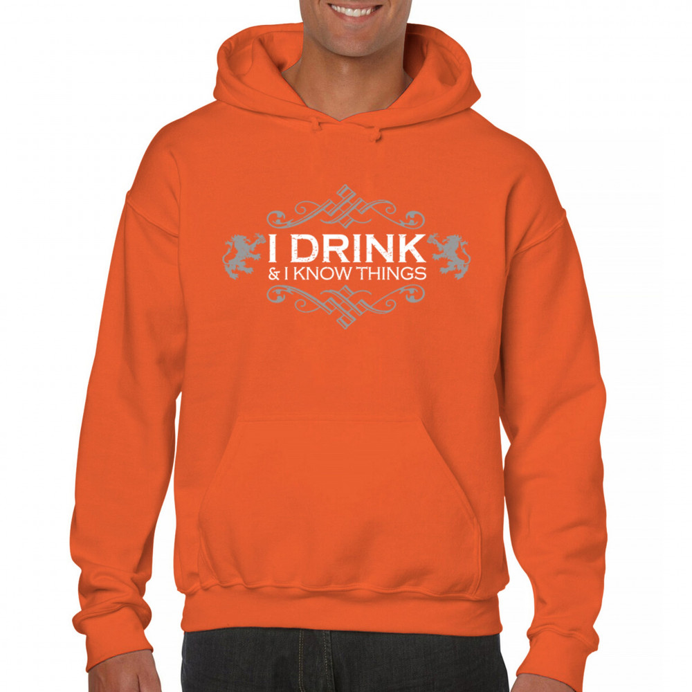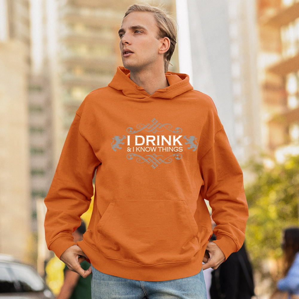 Show off your wit with the “I Drink and I Know Things†design, styled with medieval scrollwork and regal lions. Whether you're holding a pint at the bar, leading trivia night, or binge-watching fantasy series, this bold and funny piece is made for those who love drinking, sarcasm, and clever quotes with timeless flair.