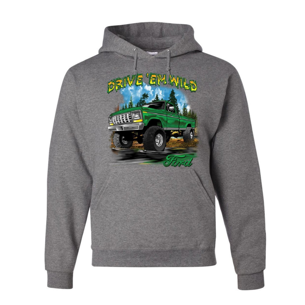 DRIVE 'EM WILD hoodie ford pickup trucks f-150 offroad mud ride sweatshirt gray