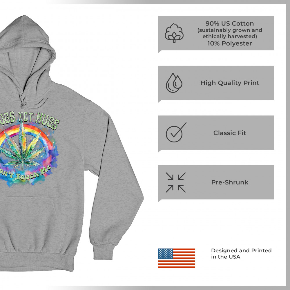 This bold marijuana leaf design blends psychedelic colors with a rainbow flair to create a loud, colorful statement. Great for weed lovers who value space, it's the perfect look for expressing antisocial vibes. Whether you're at festivals, smokeouts, or chilling solo, this cannabis design mixes humor, independence, and stoner culture with unapologetic style.