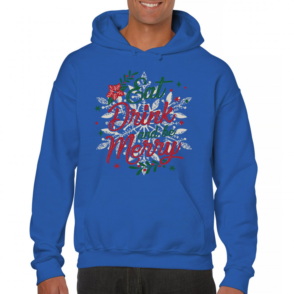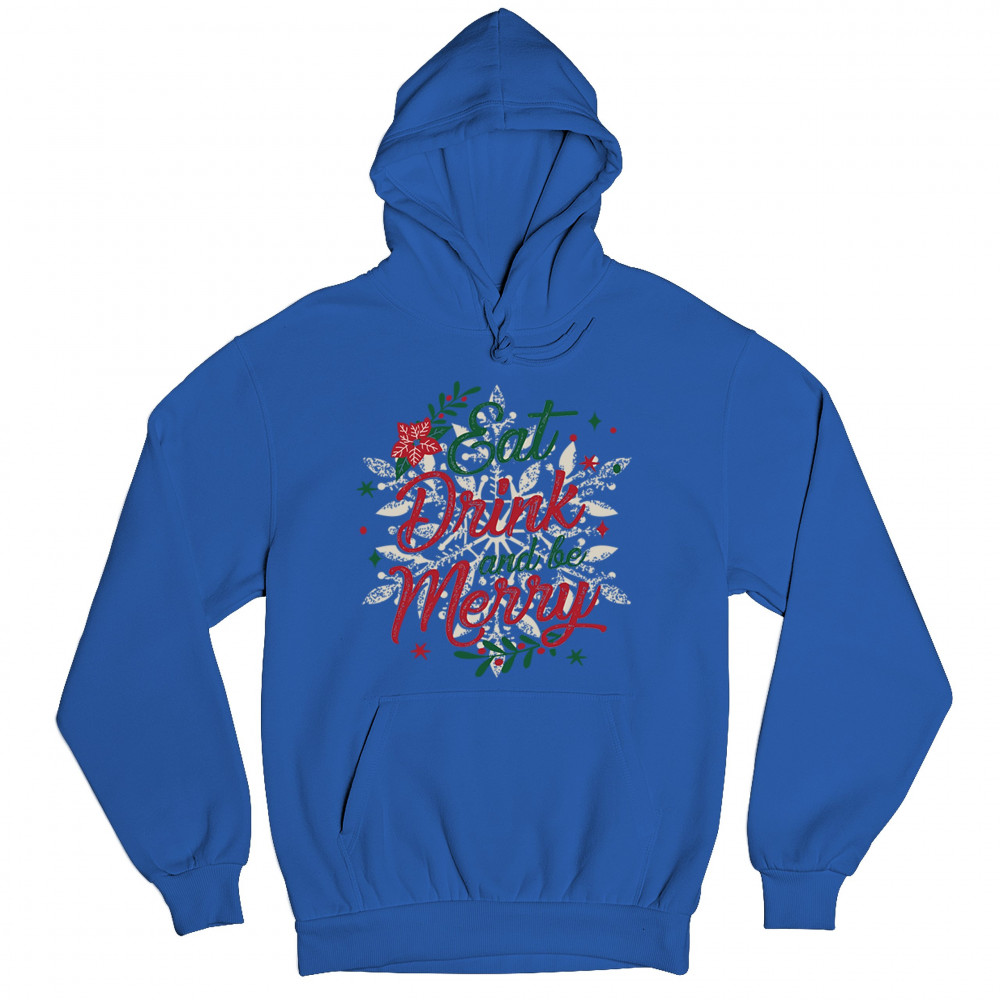 EAT DRINK & BE MERRY sweatshirt christmas holiday spirit festive xmas hoodie royal blue