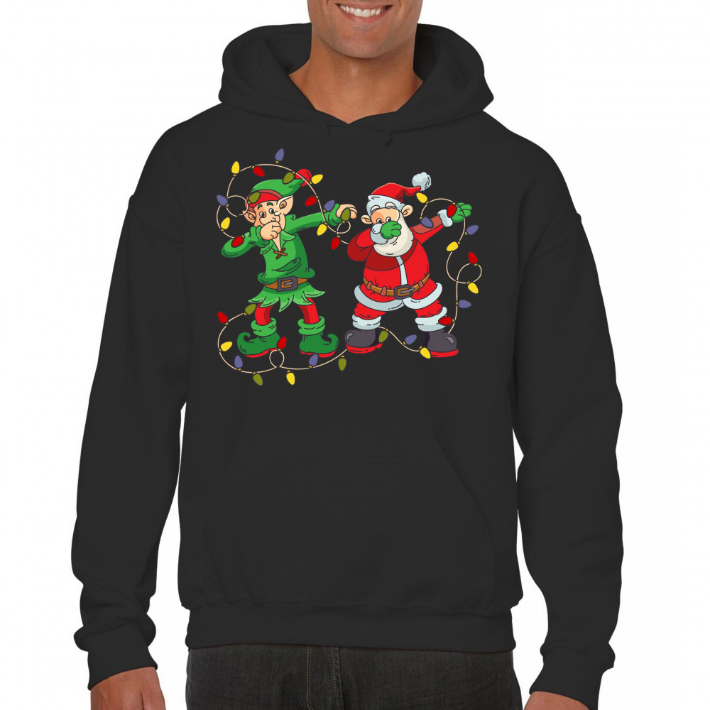 ELF AND SANTA CLAUS DAB DANCING sweatshirt merry and bright christmas hoodie black