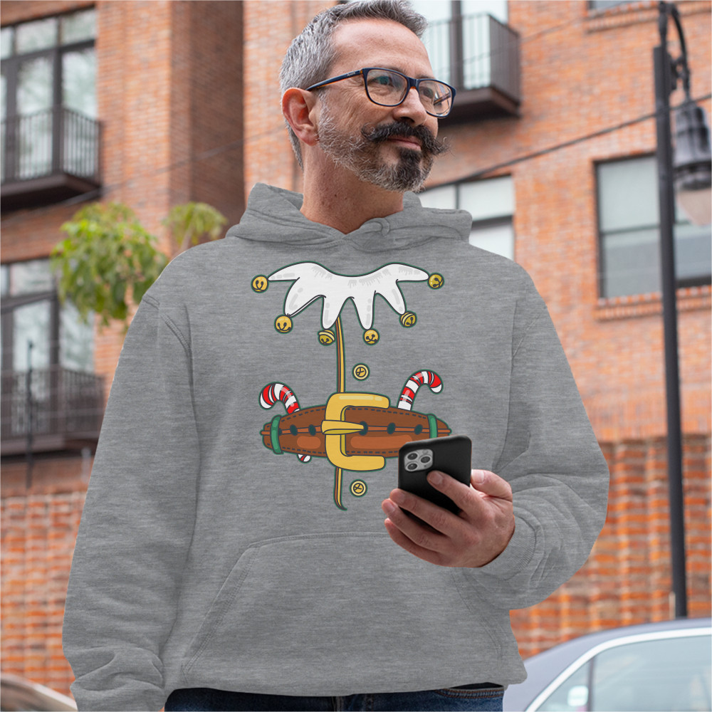 A print designed as an elven costume with two candy canes in his belt. Amazing choice to have fun and spread positive vibes on Christmas Eve.