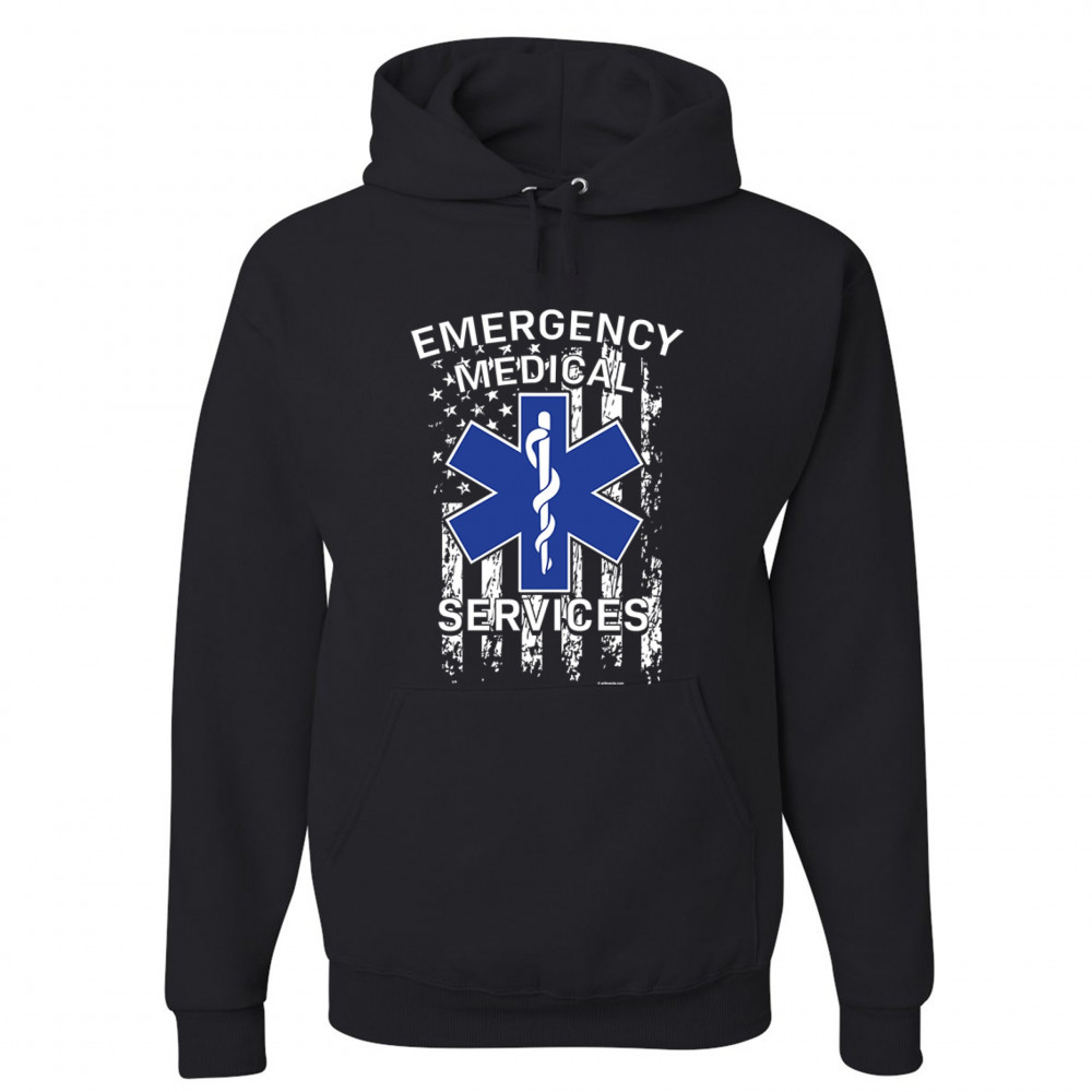 EMERGENCY MEDICAL SERVICES sweatshirt american flag star of life ems hoodie black
