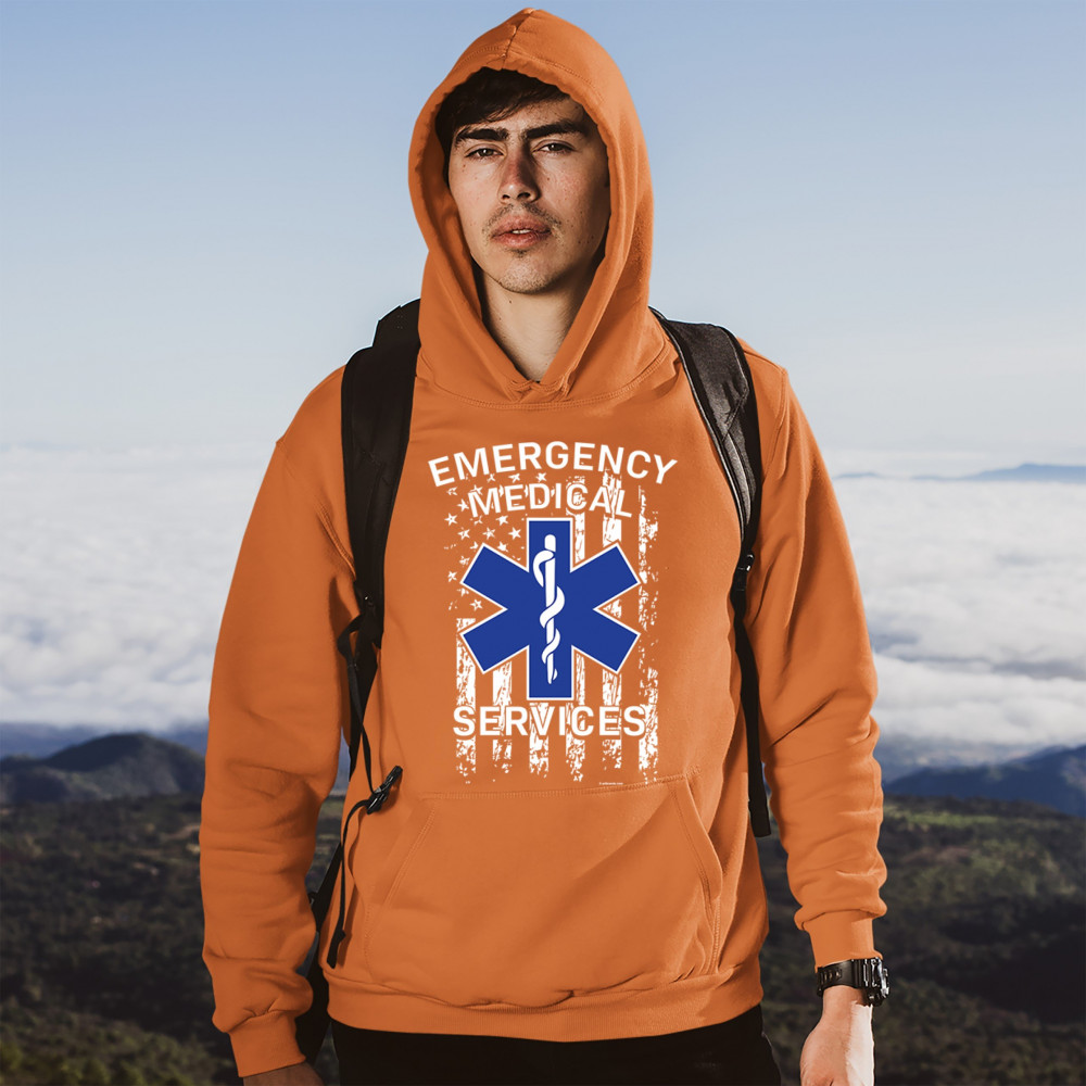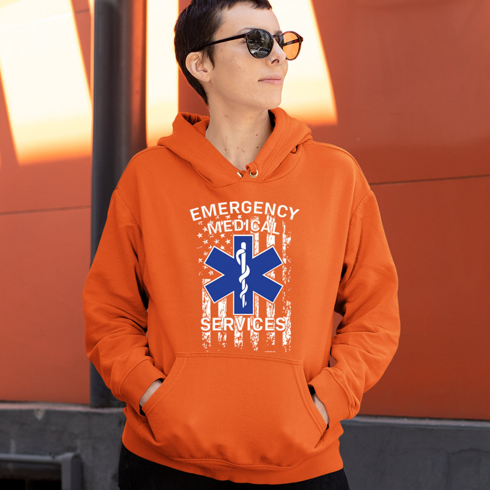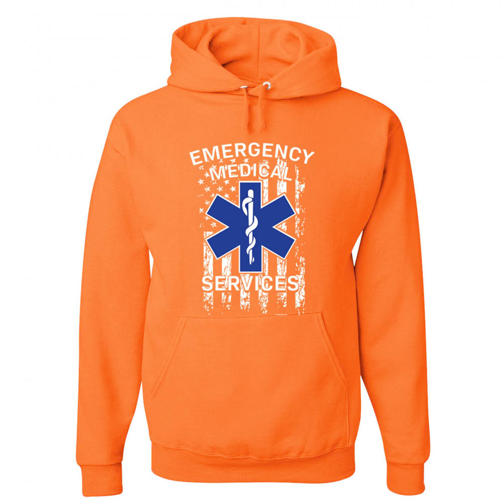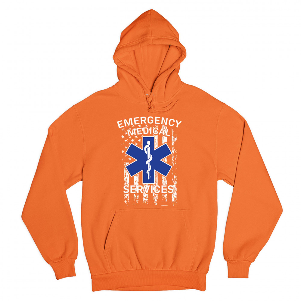 EMERGENCY MEDICAL SERVICES sweatshirt american flag star of life ems hoodie orange