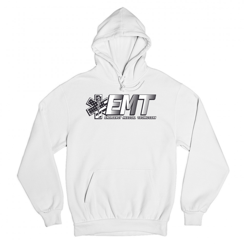 A print featuring big letters "EMT" - an abbreviation for "Emergency Medical Technician". On the left side the print features a Star of Life, the worldwide recognized symbol of emergency medical services, with the Rod of Asclepius and Stars and Stripes in
