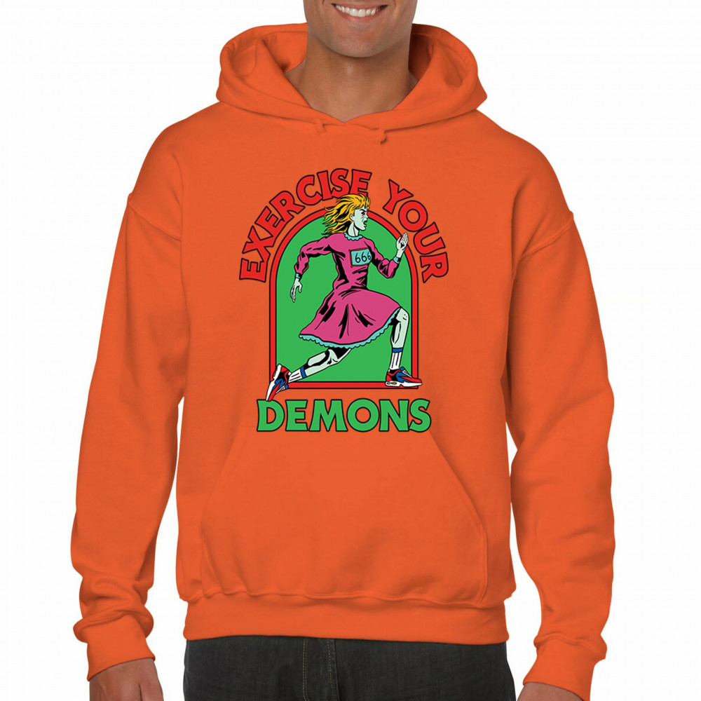 Exercise Your Demons shirt – funny halloween gym shirt with fitness humor, scary workout design, demon runner style, and spooky parody vibes.