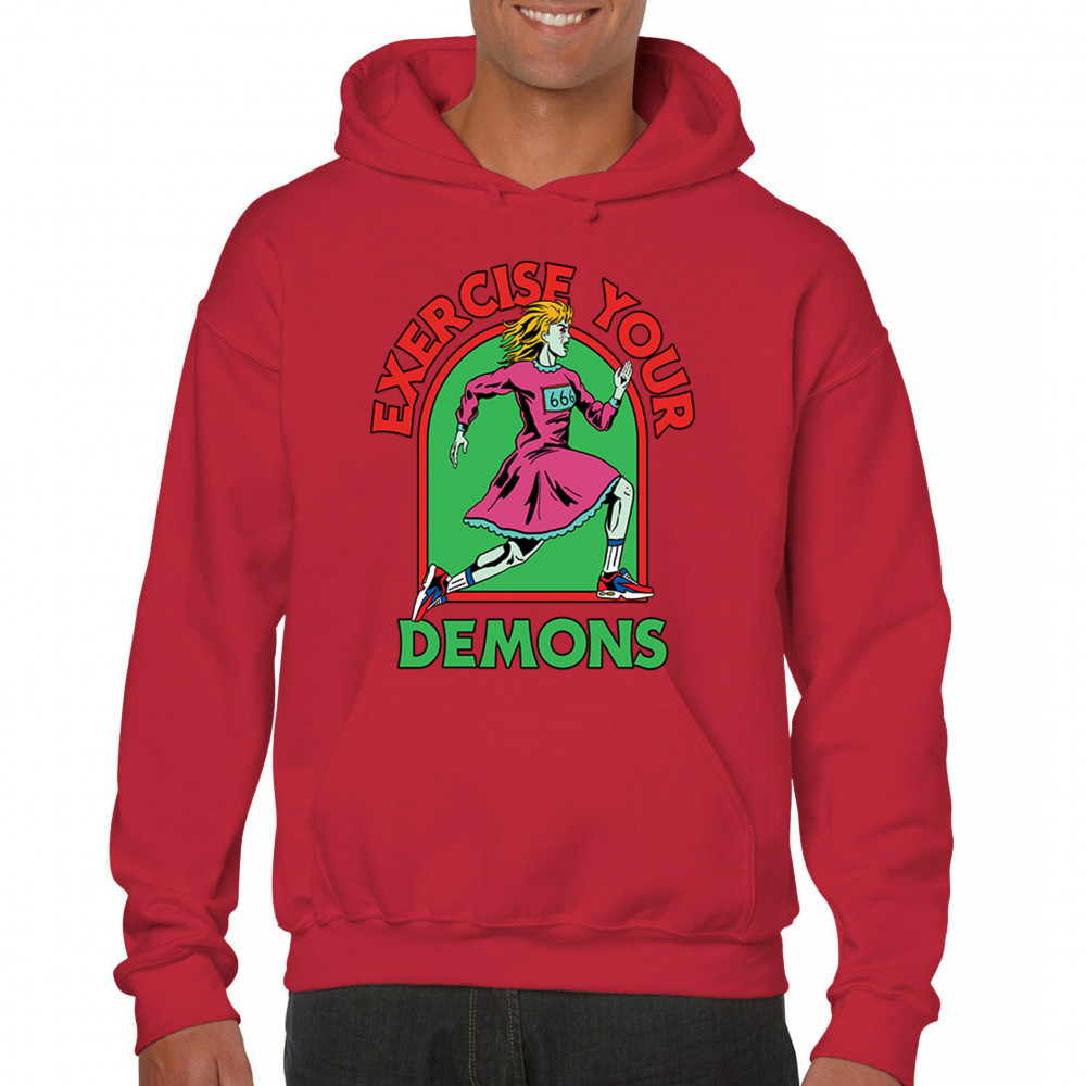 Exercise Your Demons shirt – funny halloween gym shirt with fitness humor, scary workout design, demon runner style, and spooky parody vibes.