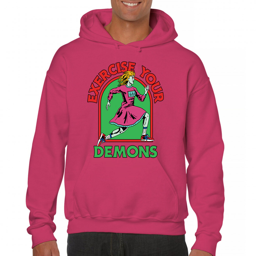Exercise Your Demons shirt – funny halloween gym shirt with fitness humor, scary workout design, demon runner style, and spooky parody vibes.