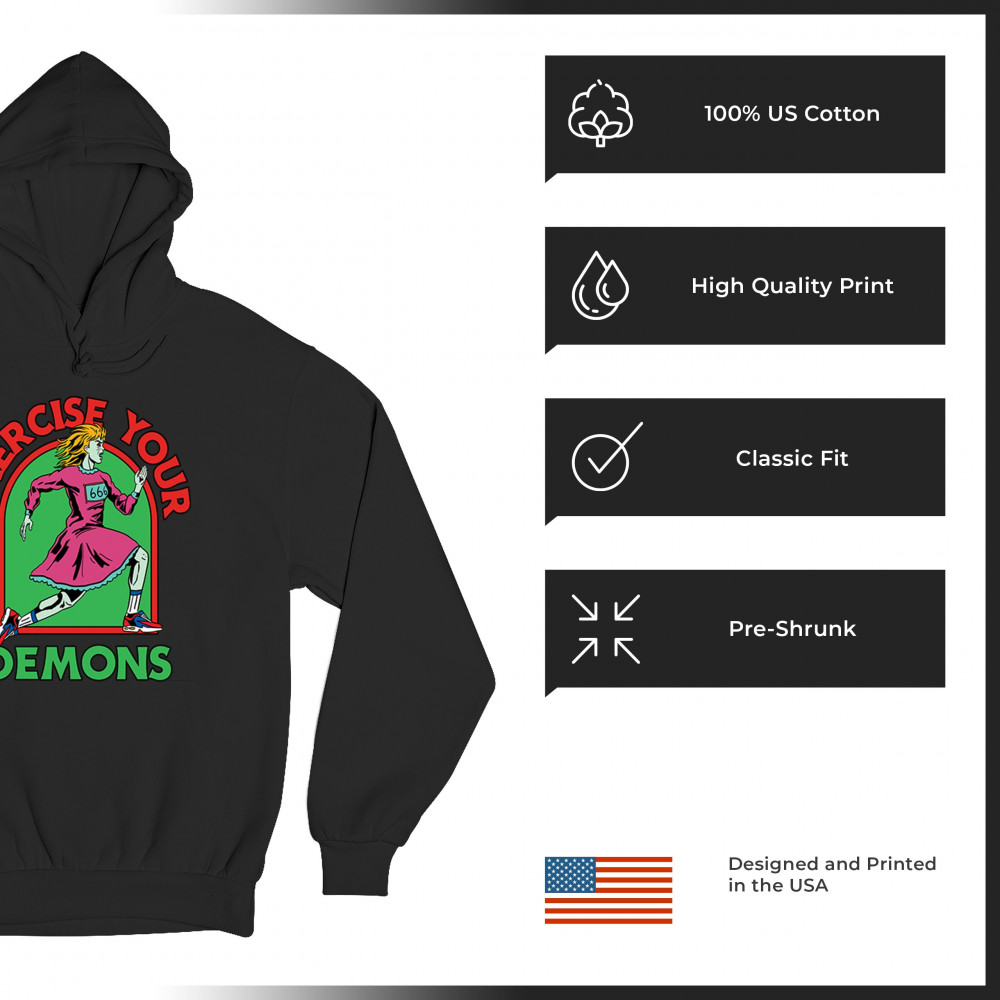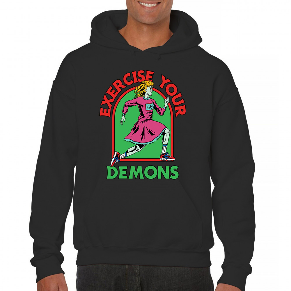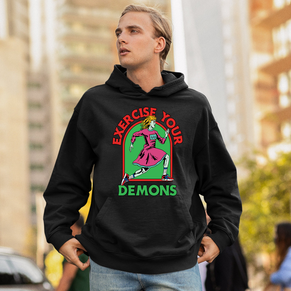 Exercise Your Demons shirt – funny halloween gym shirt with fitness humor, scary workout design, demon runner style, and spooky parody vibes.