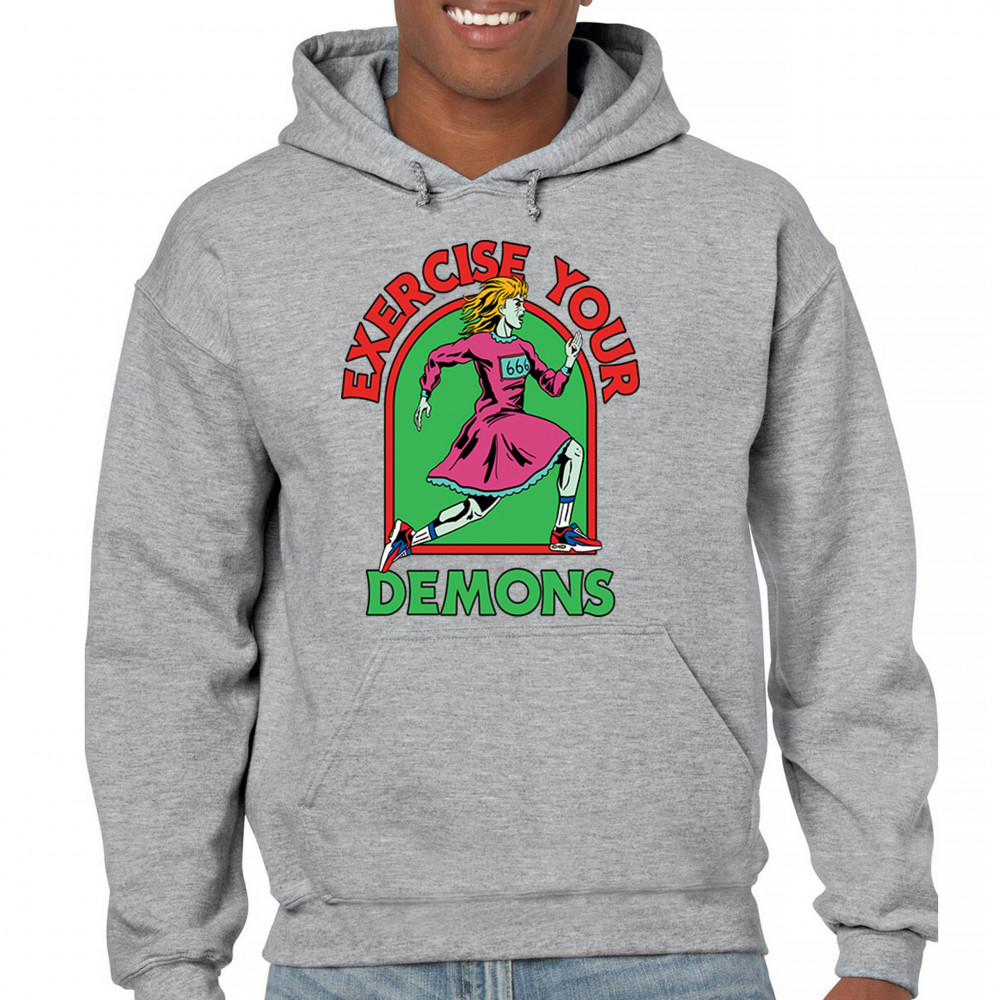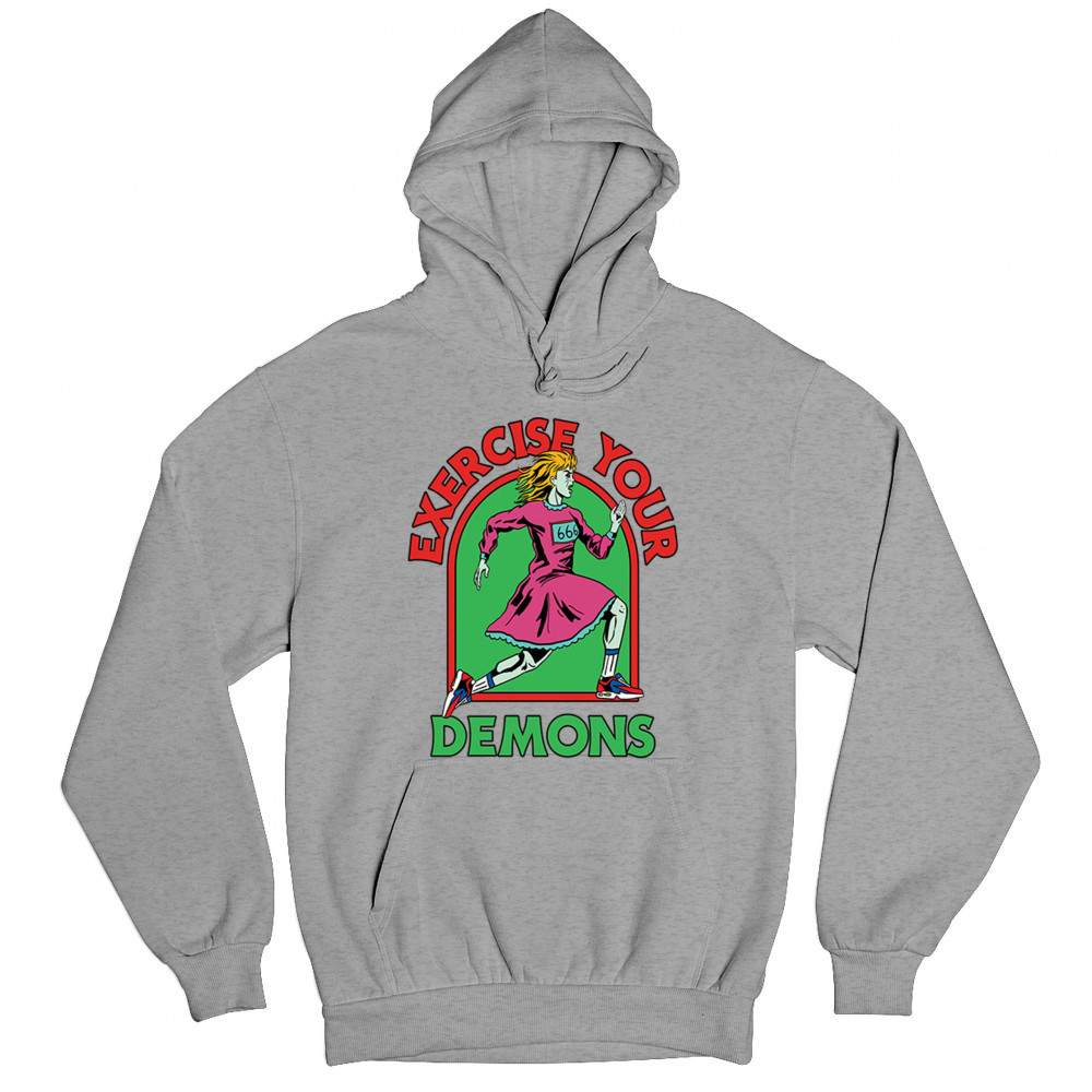EXERCISE YOUR DEMONS unisex hoodie funny halloween scary jack o lantern gray