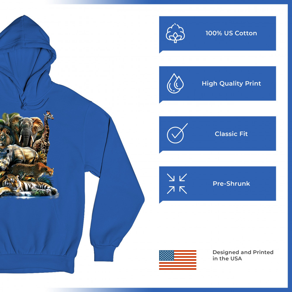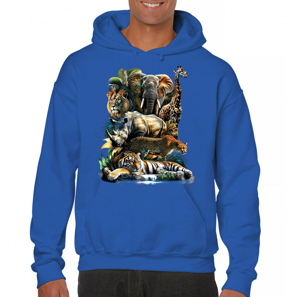 Wildlife design with lion, tiger, giraffe, rhino, cheetah, and elephant. Perfect for animal lovers and safari fans who embrace nature’s fierce spirit.