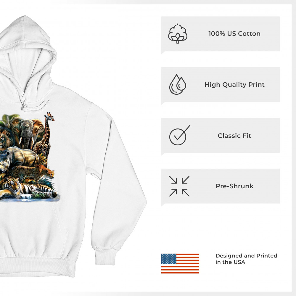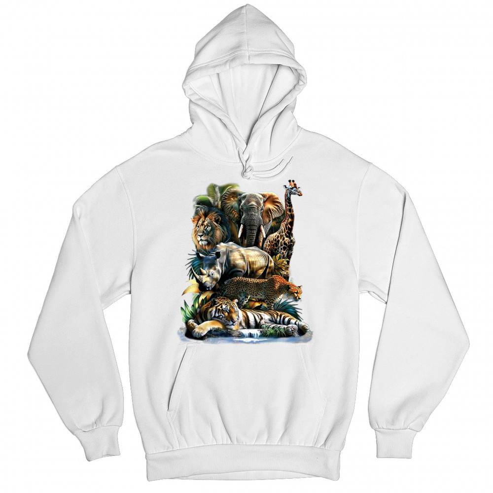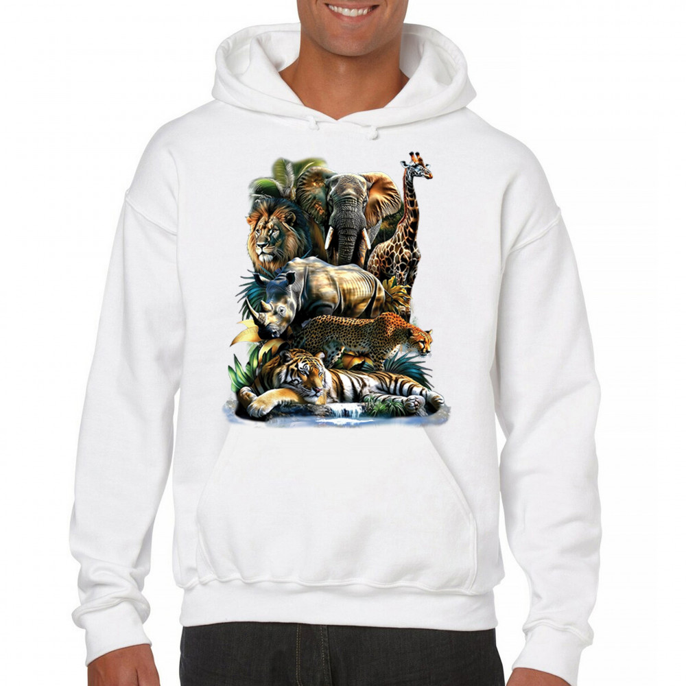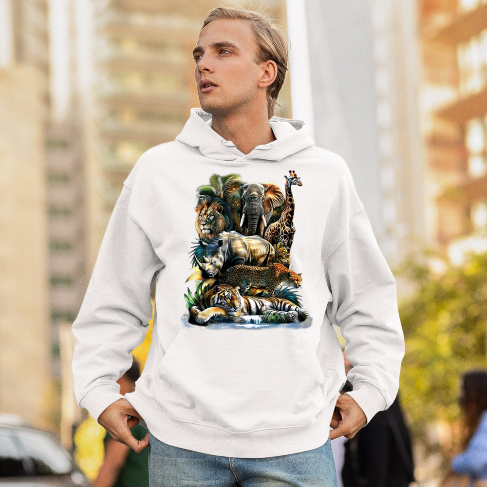 Wildlife design with lion, tiger, giraffe, rhino, cheetah, and elephant. Perfect for animal lovers and safari fans who embrace nature’s fierce spirit.