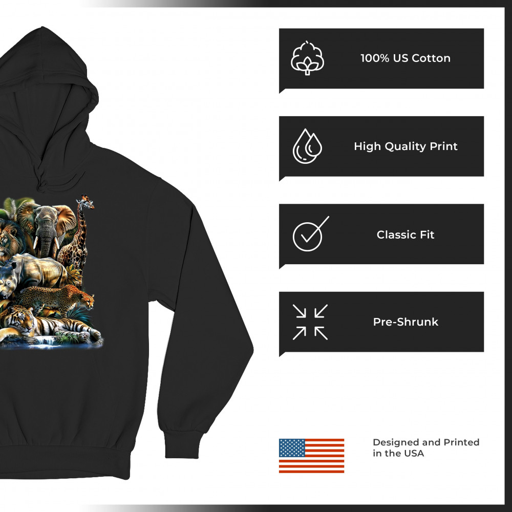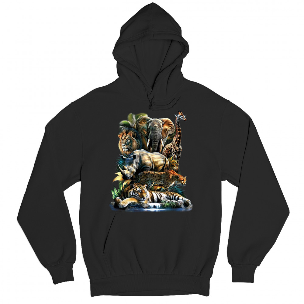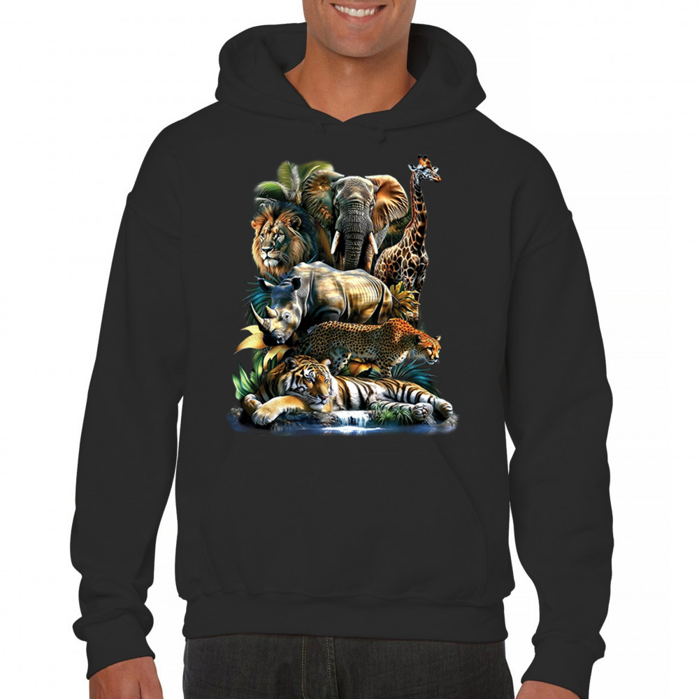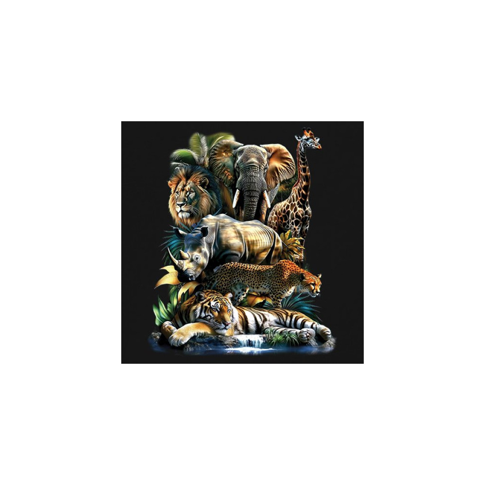 Wildlife design with lion, tiger, giraffe, rhino, cheetah, and elephant. Perfect for animal lovers and safari fans who embrace nature’s fierce spirit.