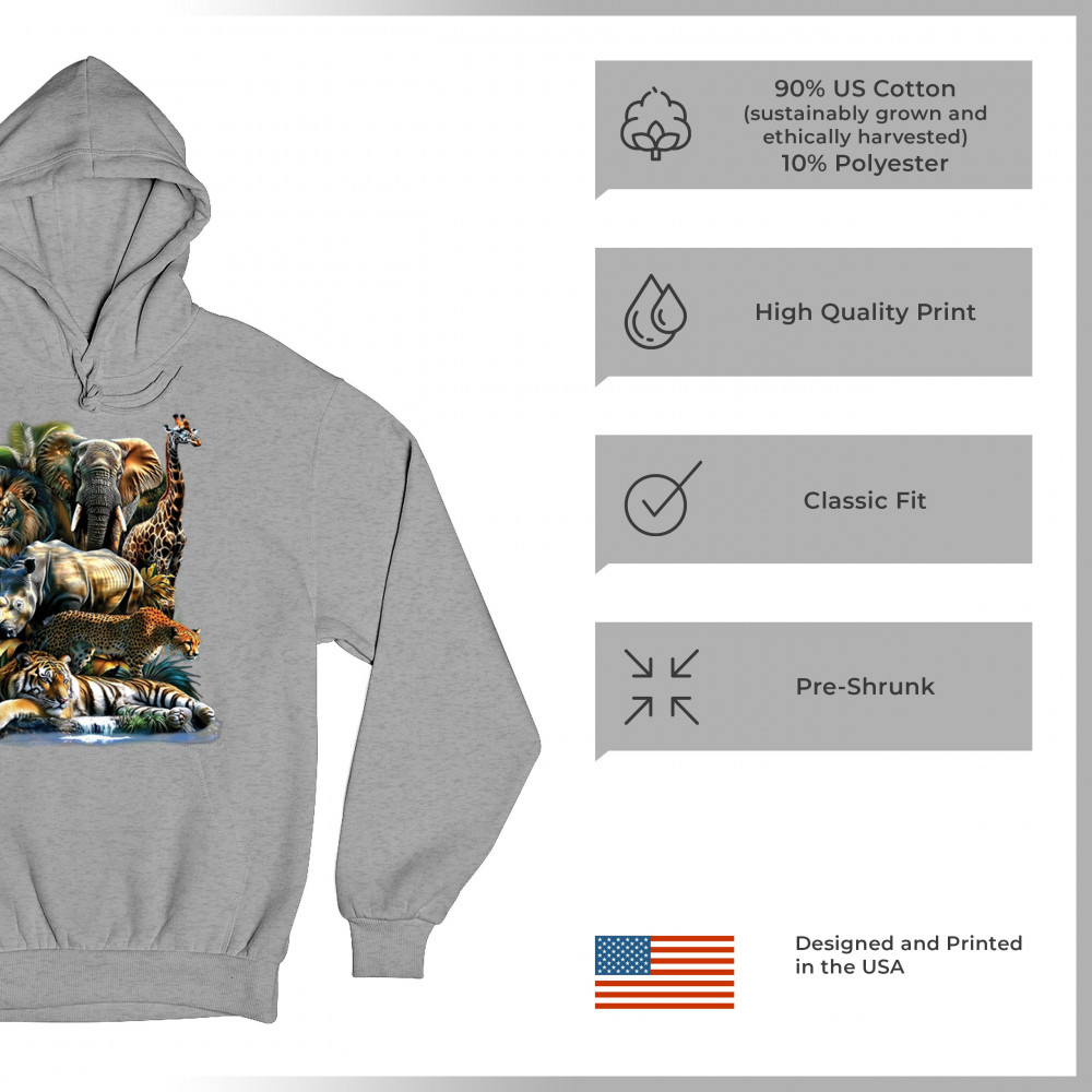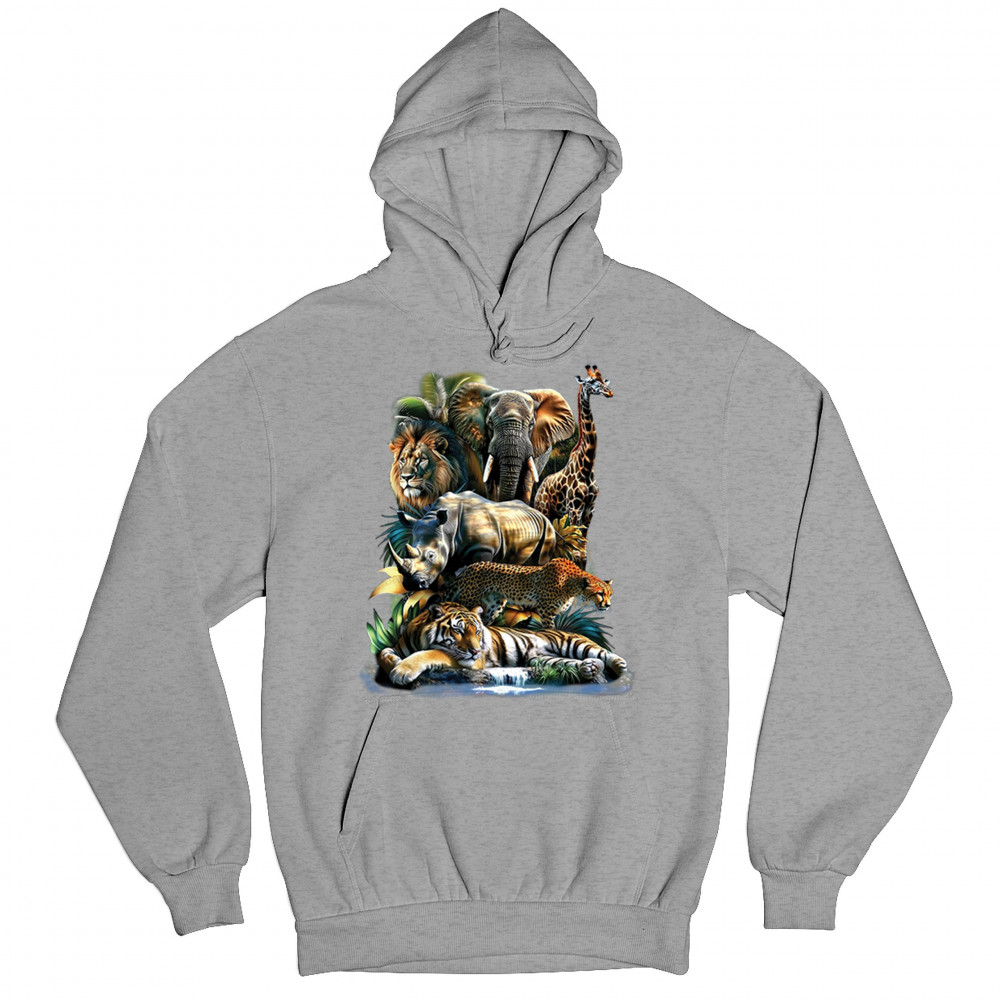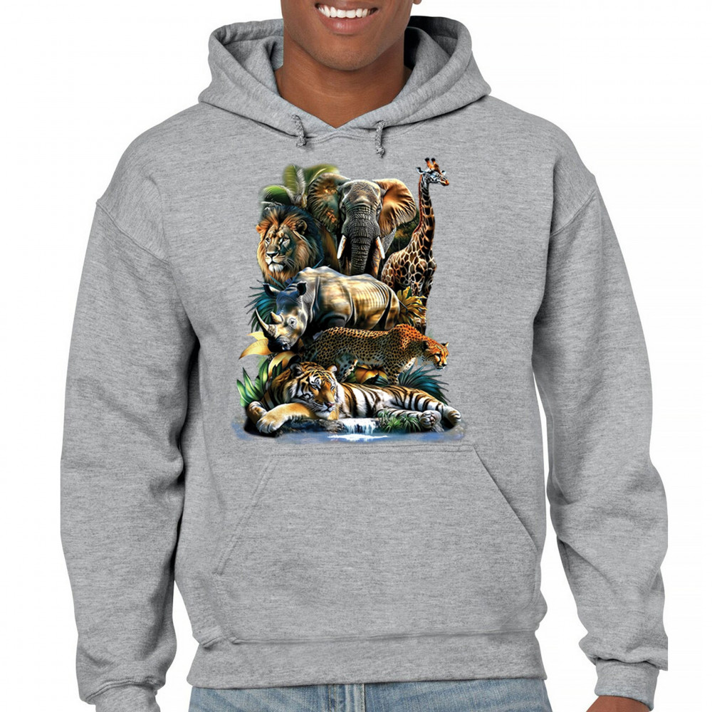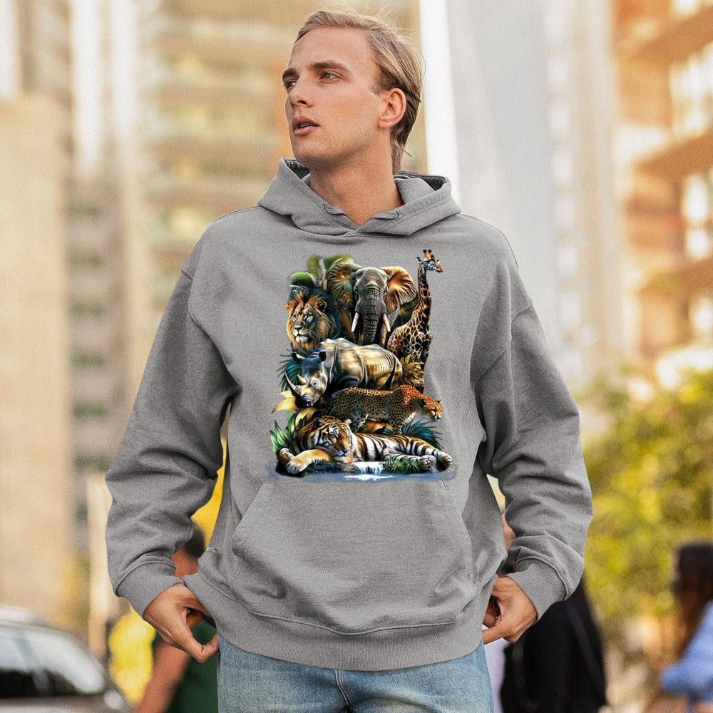 Wildlife design with lion, tiger, giraffe, rhino, cheetah, and elephant. Perfect for animal lovers and safari fans who embrace nature’s fierce spirit.
