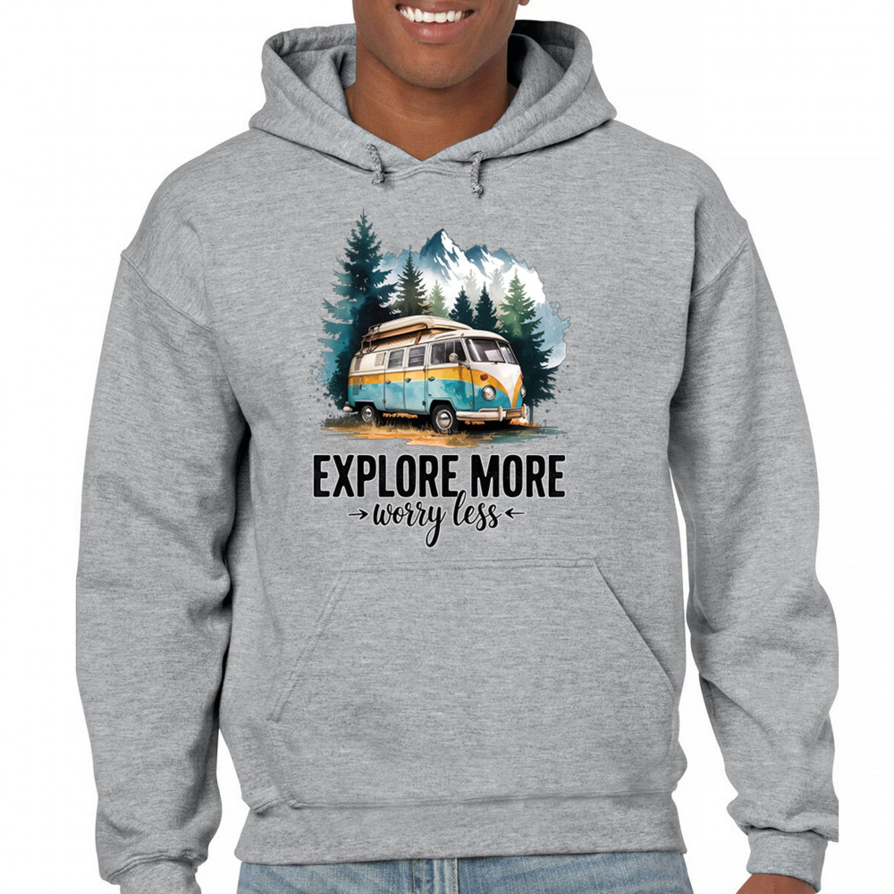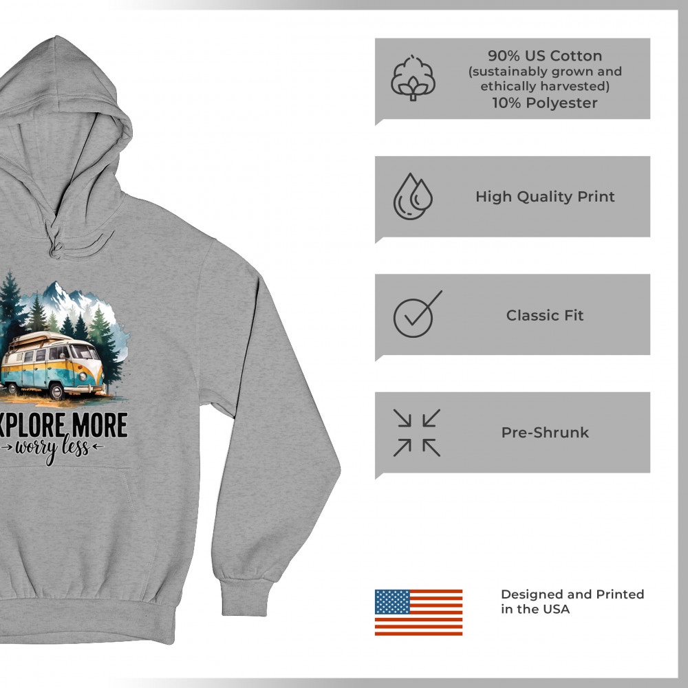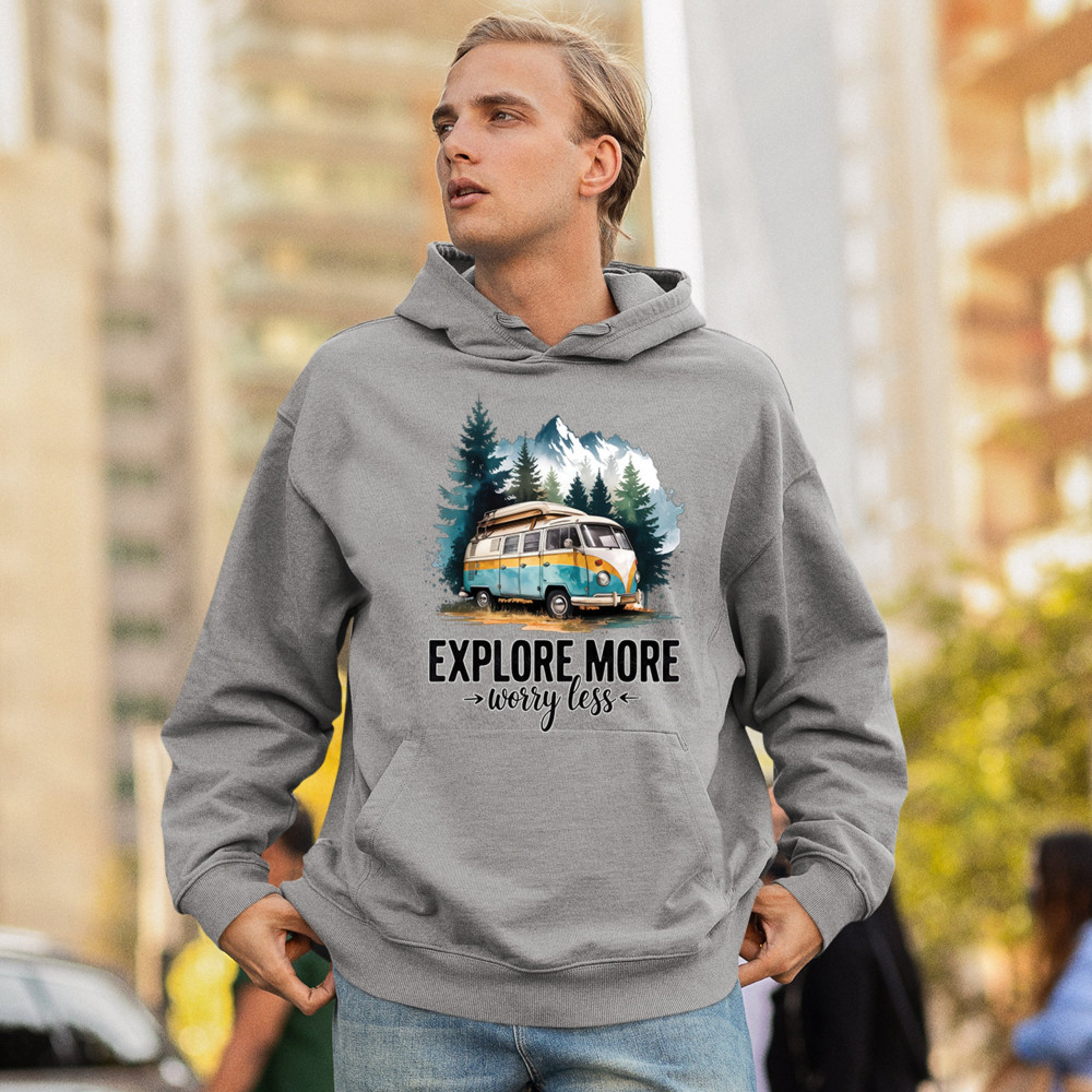 Explore More Worry Less is made for the outdoor soul—celebrating trail lovers, weekend hikers, and national park explorers. Whether you're into off-grid adventures or glamping with family, this design fits your lifestyle. Embrace nature, campfire moments, and wilderness vibes with a look built for your next escape.