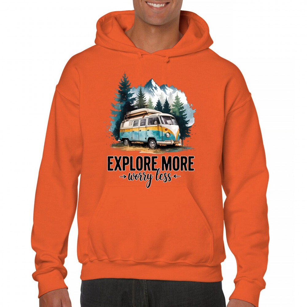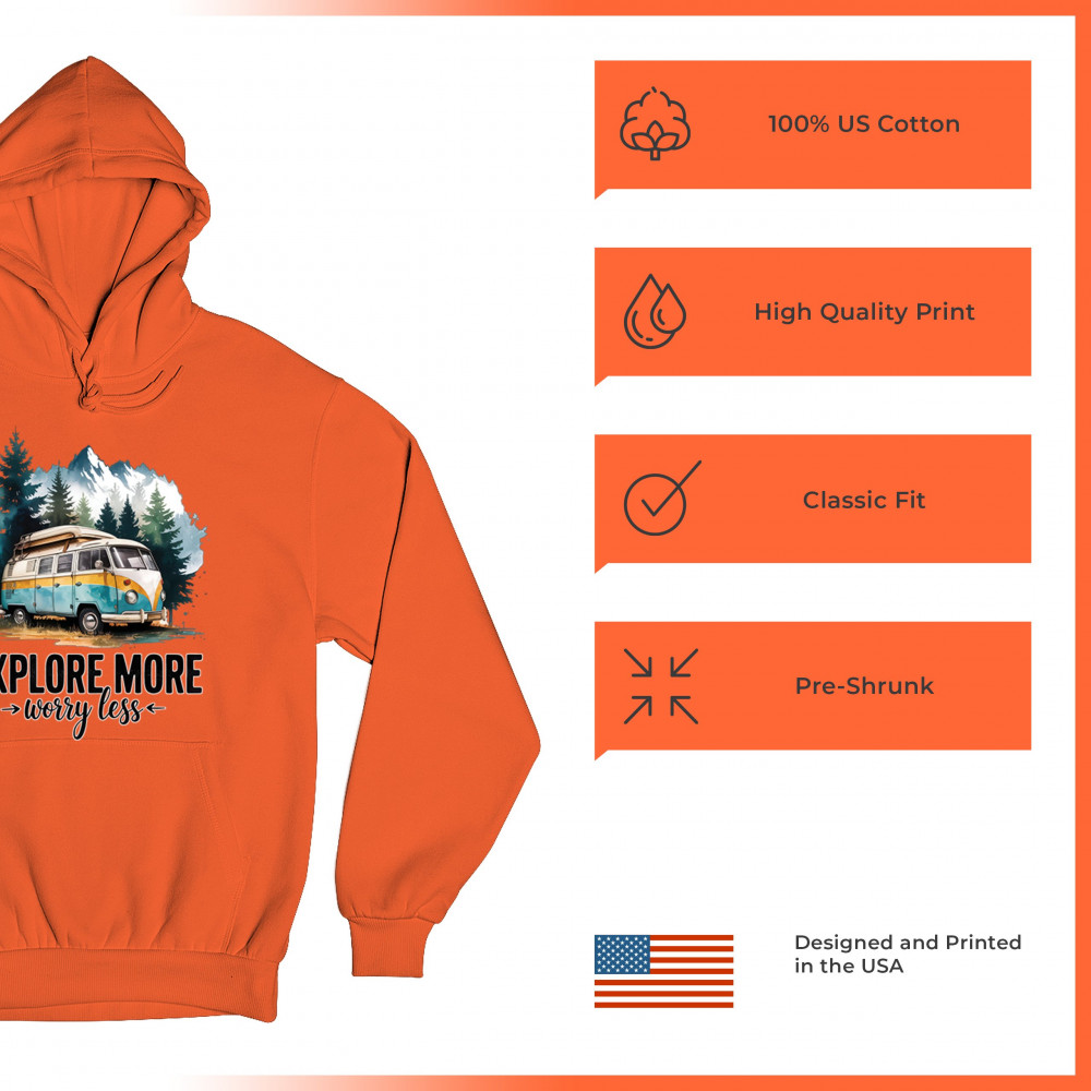 Explore More Worry Less is made for the outdoor soul—celebrating trail lovers, weekend hikers, and national park explorers. Whether you're into off-grid adventures or glamping with family, this design fits your lifestyle. Embrace nature, campfire moments, and wilderness vibes with a look built for your next escape.