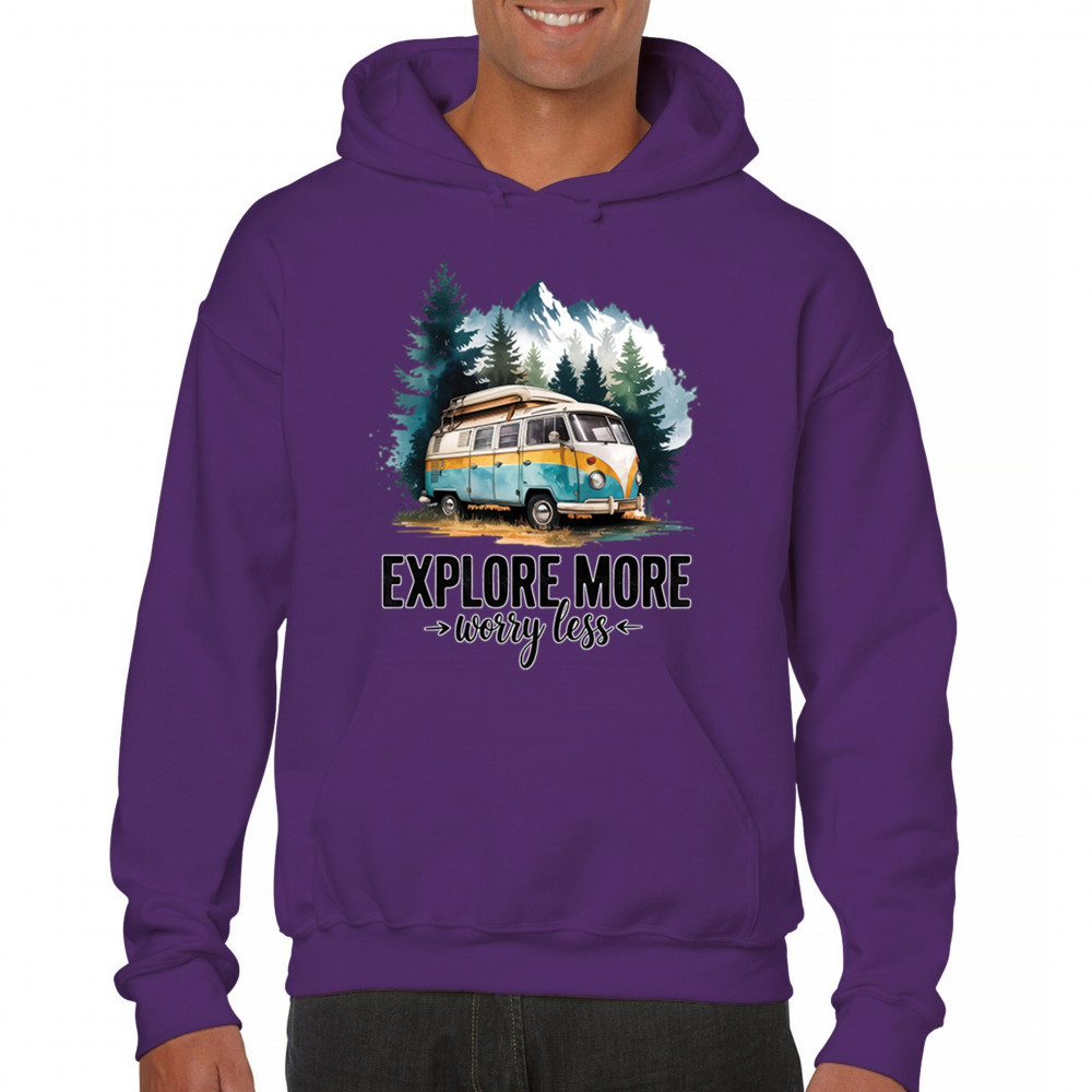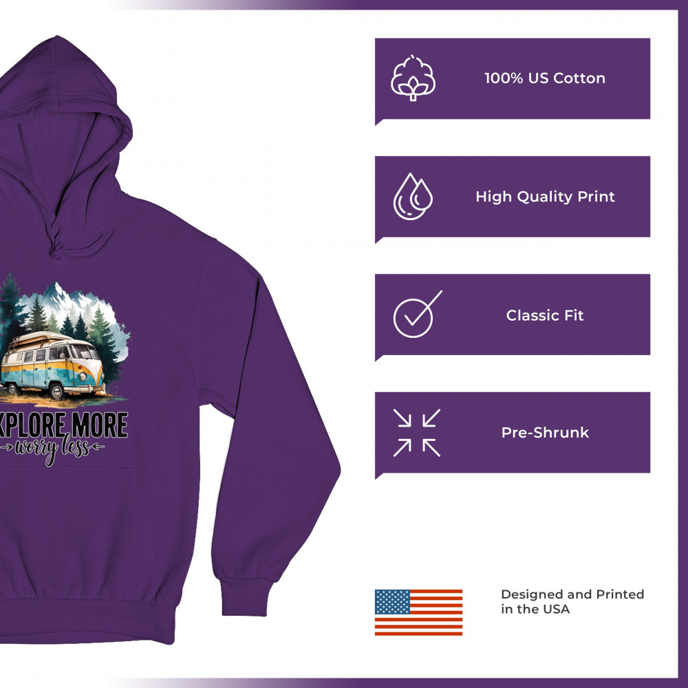 Explore More Worry Less is made for the outdoor soul—celebrating trail lovers, weekend hikers, and national park explorers. Whether you're into off-grid adventures or glamping with family, this design fits your lifestyle. Embrace nature, campfire moments, and wilderness vibes with a look built for your next escape.