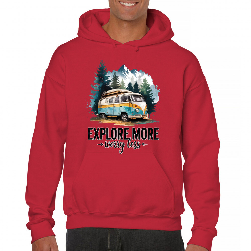 Explore More Worry Less is made for the outdoor soul—celebrating trail lovers, weekend hikers, and national park explorers. Whether you're into off-grid adventures or glamping with family, this design fits your lifestyle. Embrace nature, campfire moments, and wilderness vibes with a look built for your next escape.