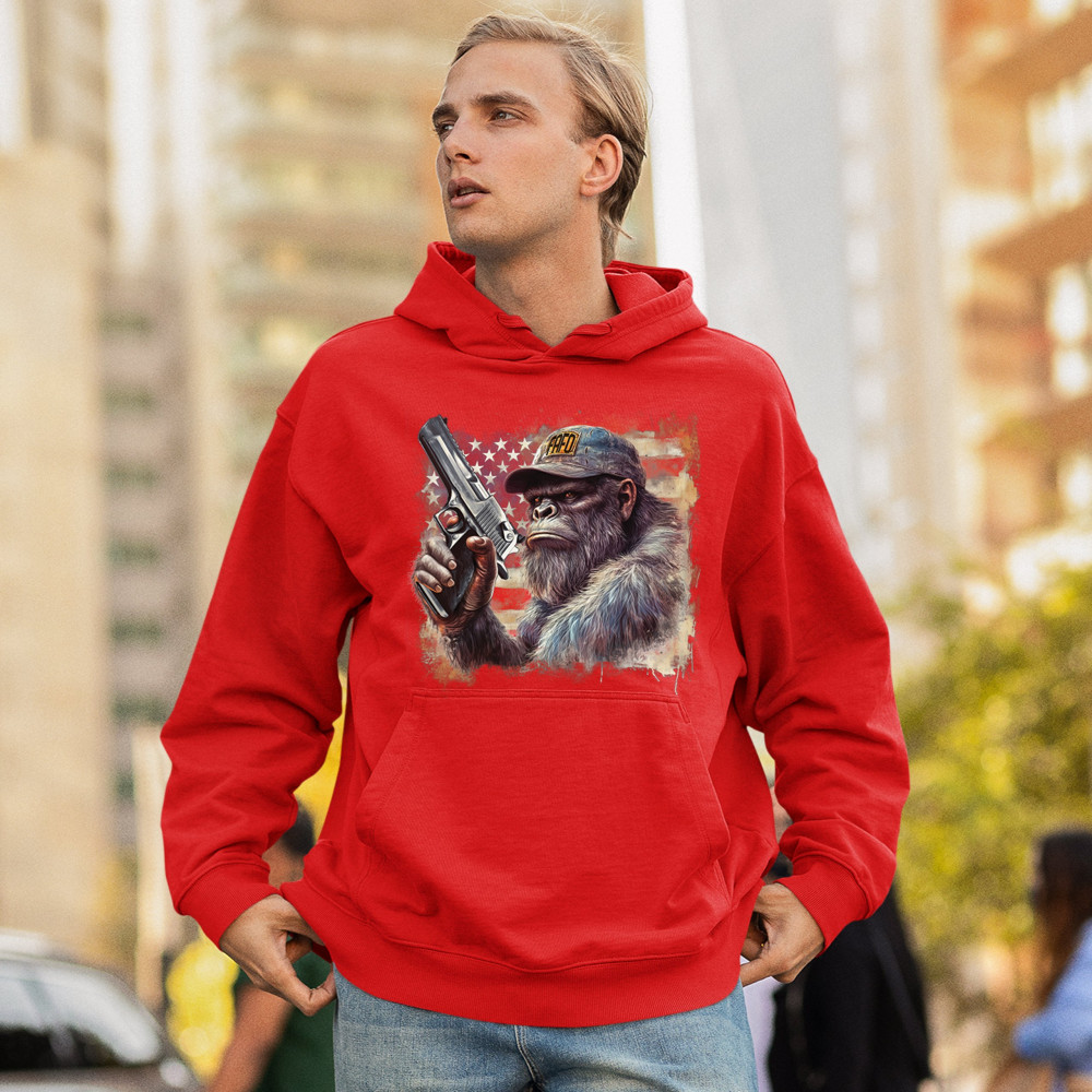 Show your Second Amendment pride with this bold patriotic gorilla design featuring the American flag and a firearm. Perfect for gun rights supporters, veterans, and freedom lovers.