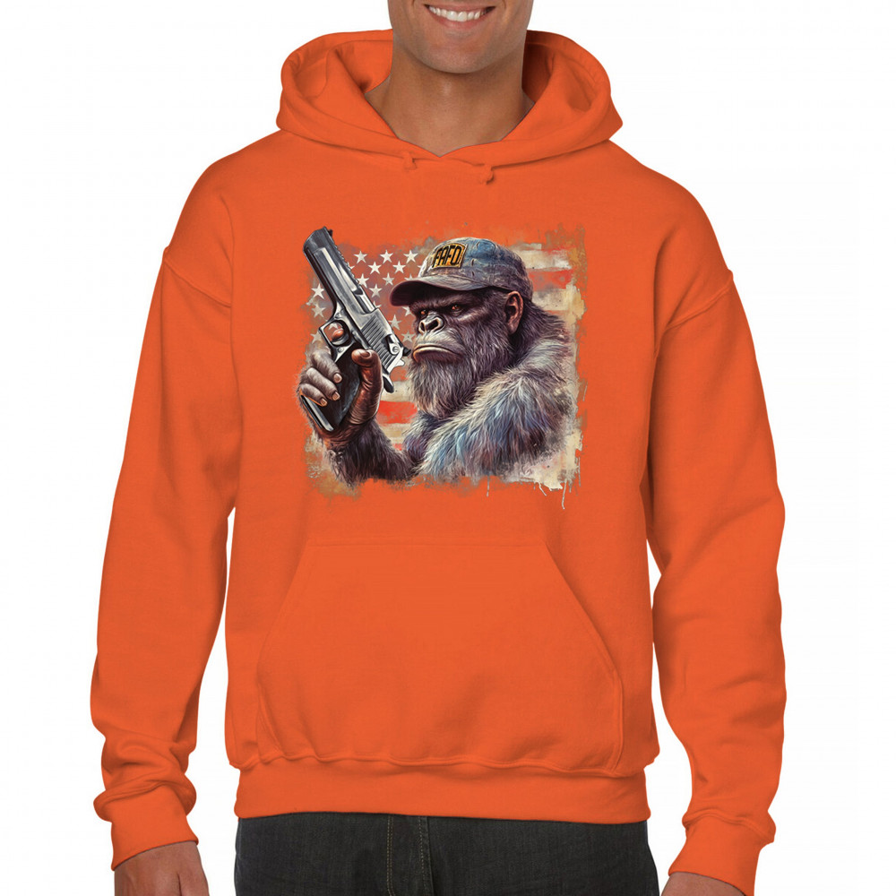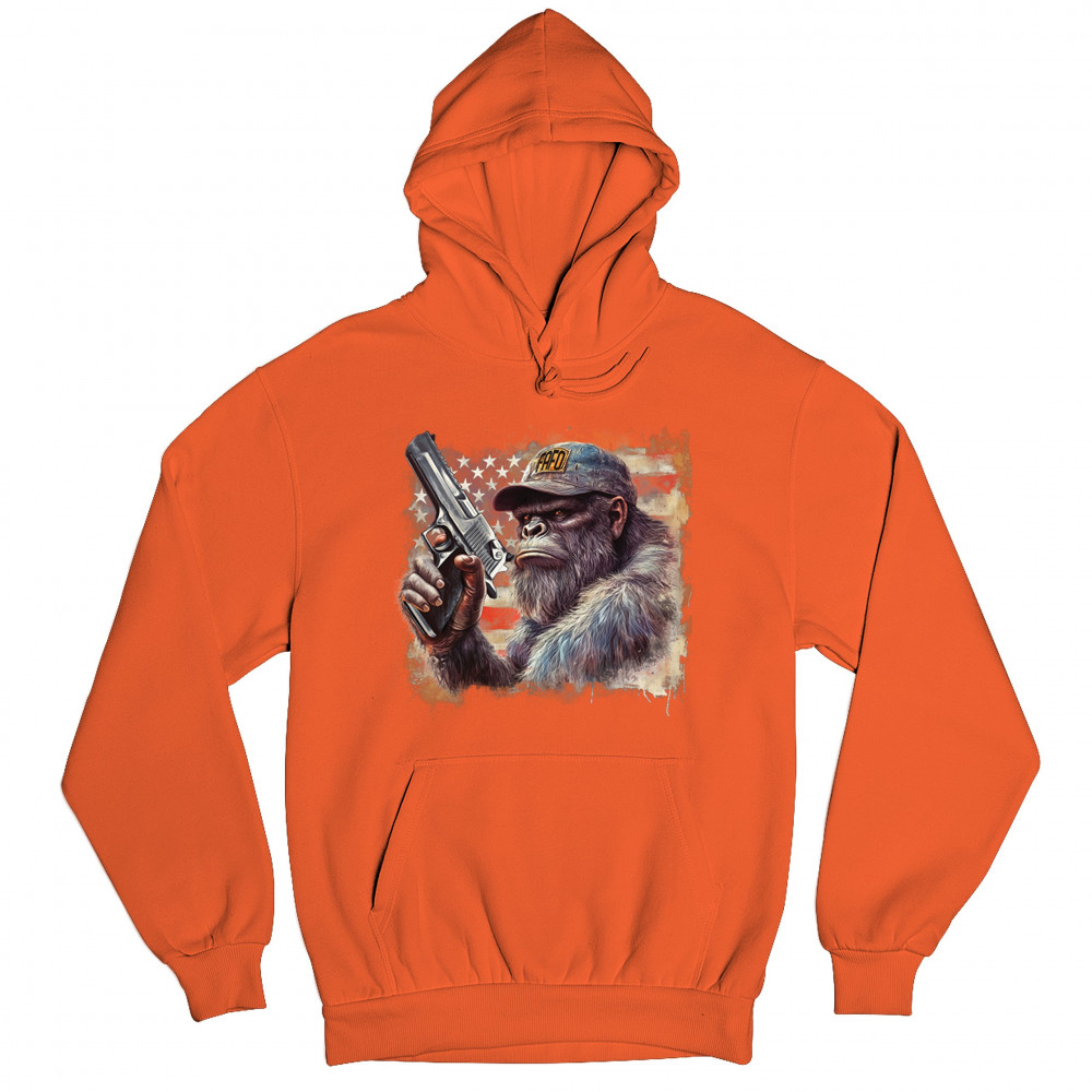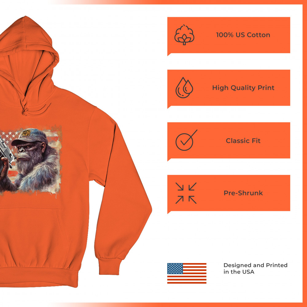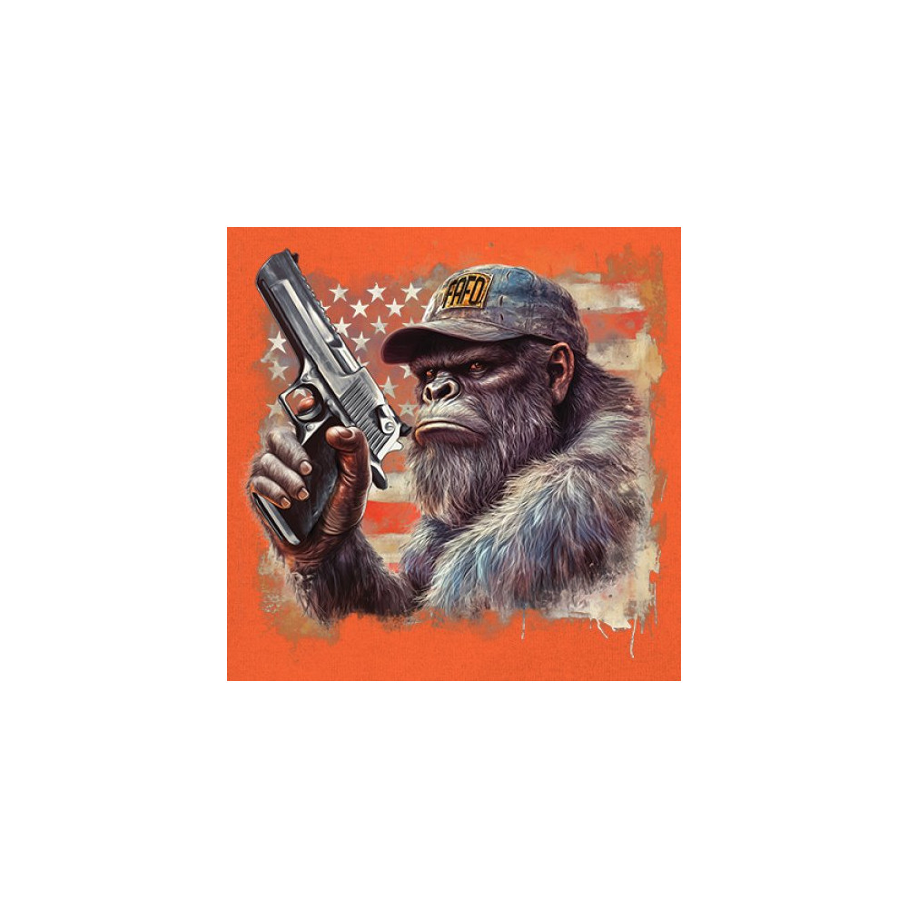 Show your Second Amendment pride with this bold patriotic gorilla design featuring the American flag and a firearm. Perfect for gun rights supporters, veterans, and freedom lovers.
