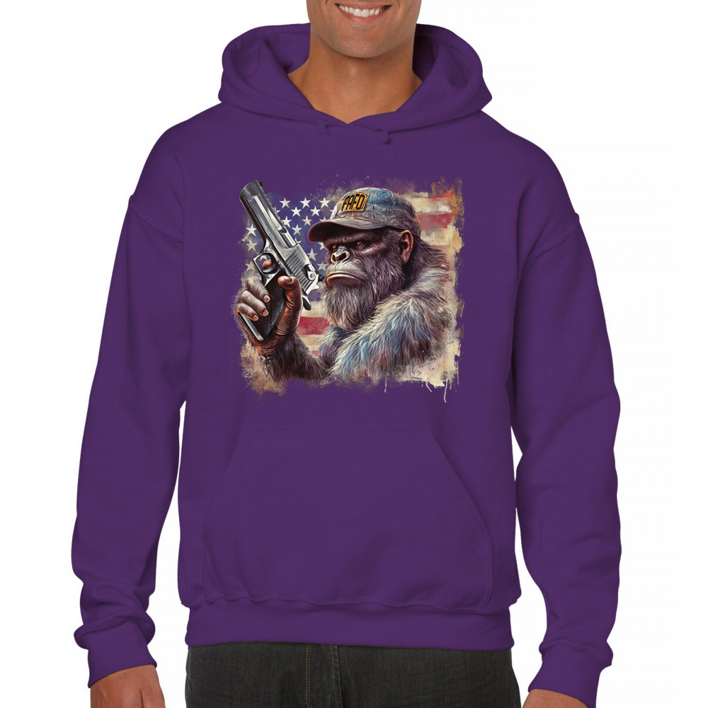 Show your Second Amendment pride with this bold patriotic gorilla design featuring the American flag and a firearm. Perfect for gun rights supporters, veterans, and freedom lovers.