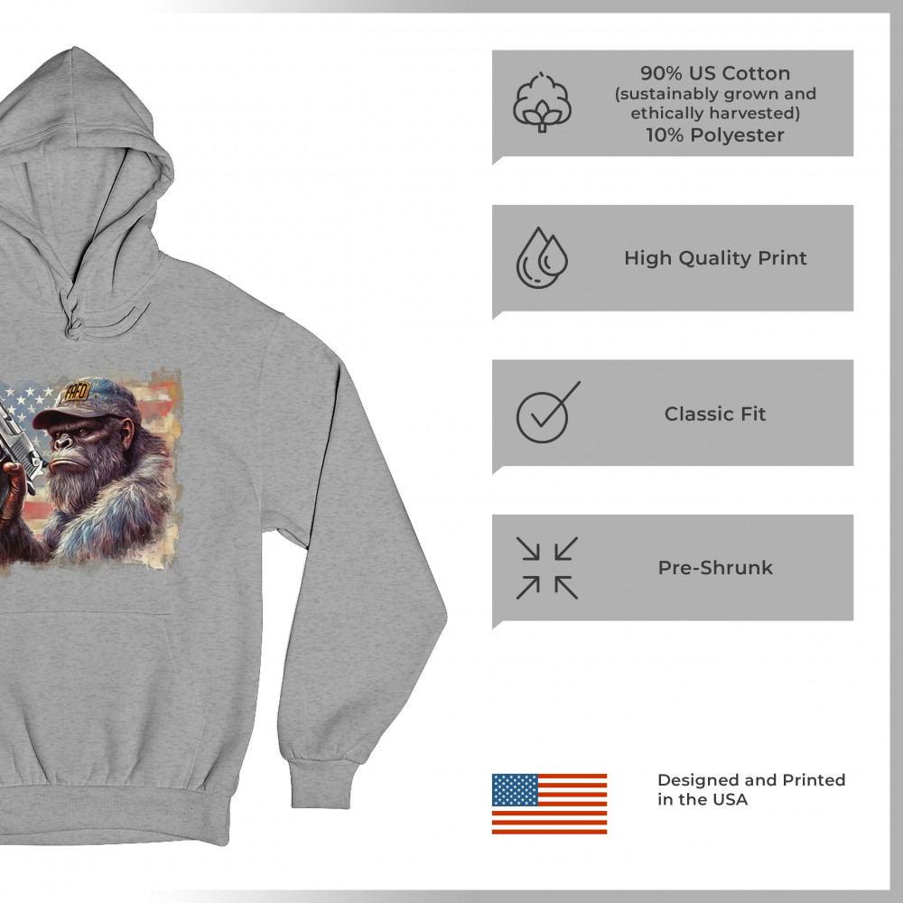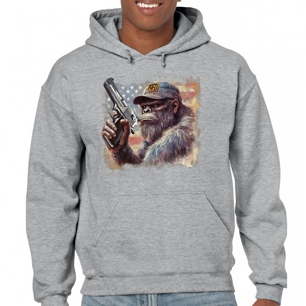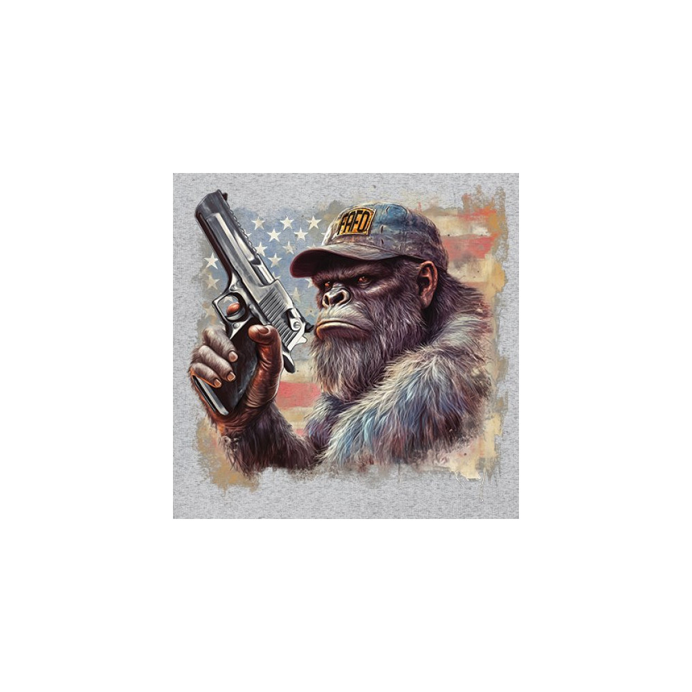 Show your Second Amendment pride with this bold patriotic gorilla design featuring the American flag and a firearm. Perfect for gun rights supporters, veterans, and freedom lovers.