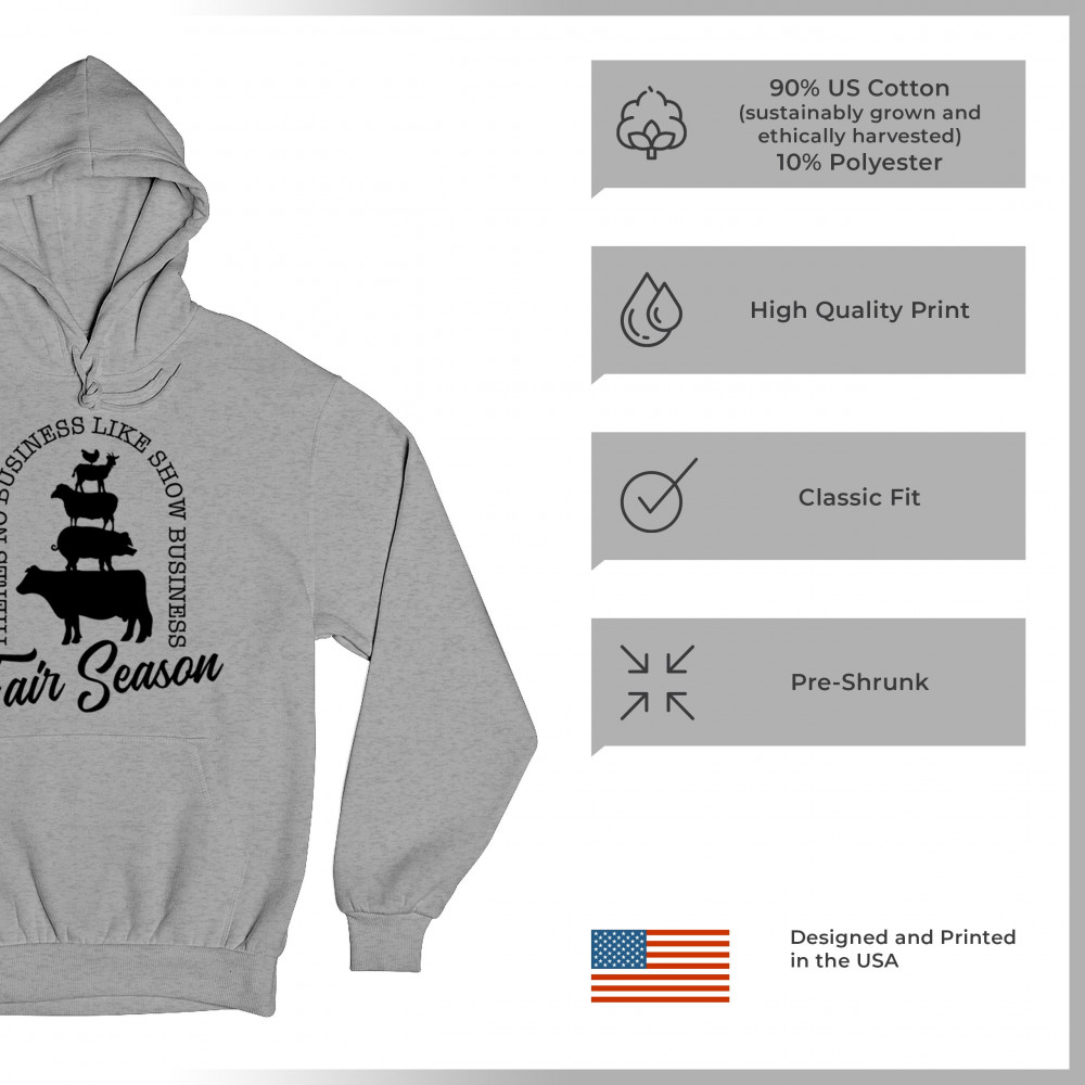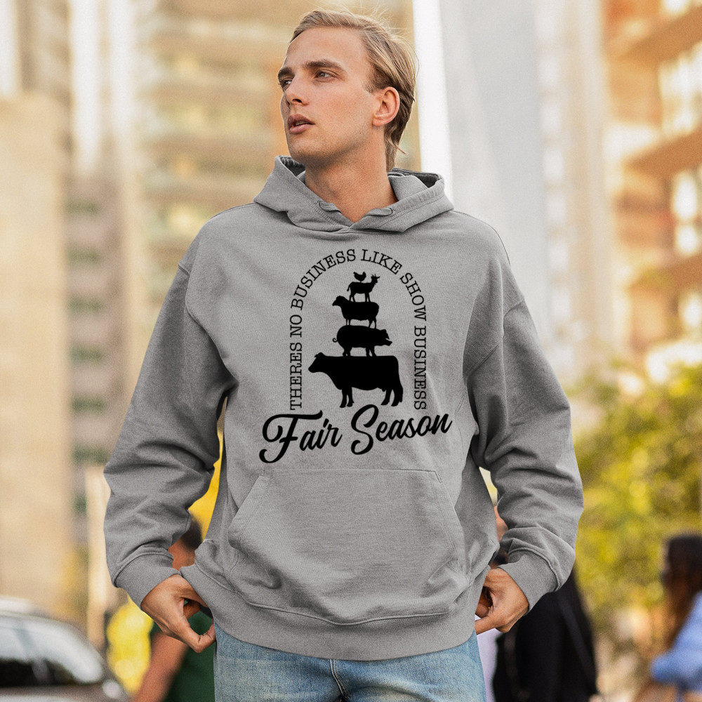 Embrace the spirit of fair season with our "Fair Season" design, ideal for anyone who loves farm animals and the excitement of fairs. Featuring silhouettes of a chicken, goat, sheep, and cow stacked together, this design brings a touch of whimsy and fun to any occasion. Perfect for 4-H members, farmers, and fair enthusiasts, it's a great way to express your love for agricultural fairs and farm life. This design makes an excellent gift, capturing the essence of show business and the joy of the fair season.