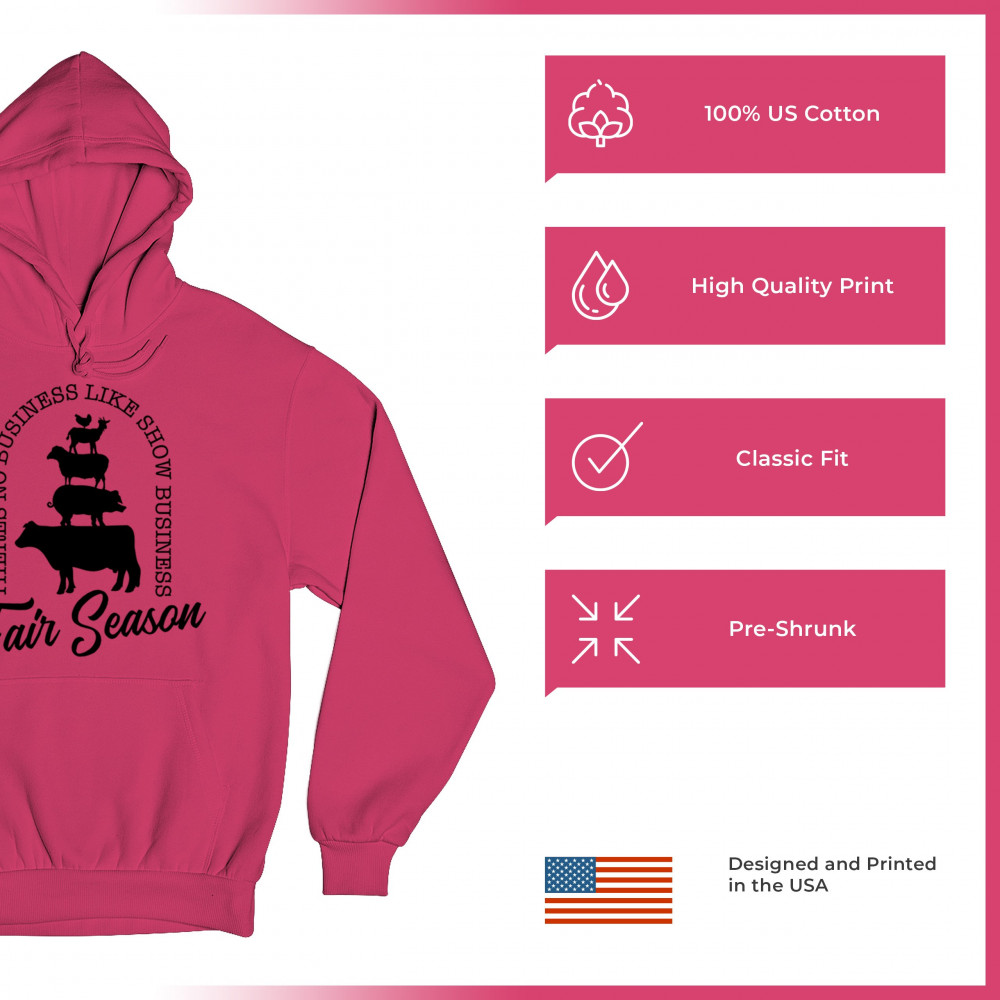 Embrace the spirit of fair season with our "Fair Season" design, ideal for anyone who loves farm animals and the excitement of fairs. Featuring silhouettes of a chicken, goat, sheep, and cow stacked together, this design brings a touch of whimsy and fun to any occasion. Perfect for 4-H members, farmers, and fair enthusiasts, it's a great way to express your love for agricultural fairs and farm life. This design makes an excellent gift, capturing the essence of show business and the joy of the fair season.