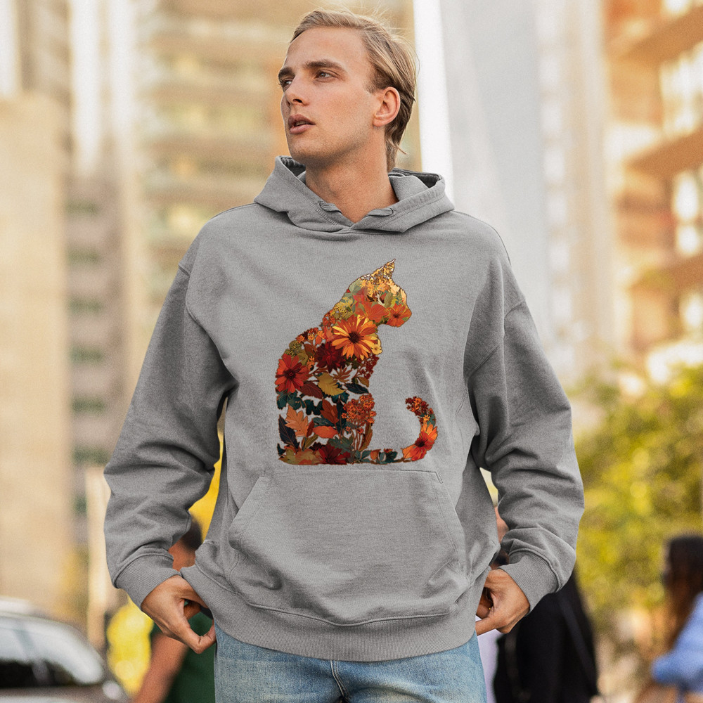 Bring autumn charm to your wardrobe with this cozy cat design filled with fall leaves and florals. Perfect for pet lovers, rustic farmhouse style, pumpkin patch outings, and fall festivals, it’s a unique way to showcase both your love of cats and seasonal harvest vibes.