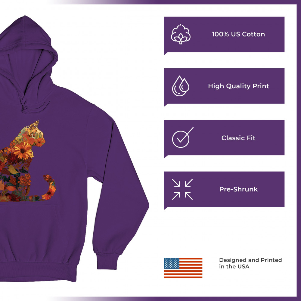Bring autumn charm to your wardrobe with this cozy cat design filled with fall leaves and florals. Perfect for pet lovers, rustic farmhouse style, pumpkin patch outings, and fall festivals, it’s a unique way to showcase both your love of cats and seasonal harvest vibes.
