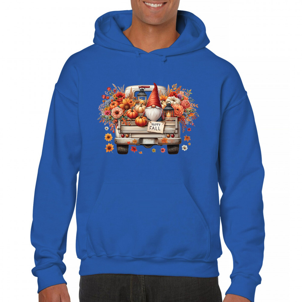 Rustic gnome truck design with pumpkins, wildflowers, and lantern glow. Perfect for Thanksgiving Day, farmhouse harvest, and cozy autumn style.