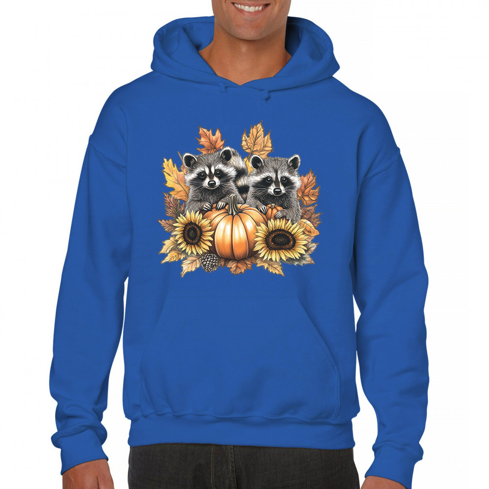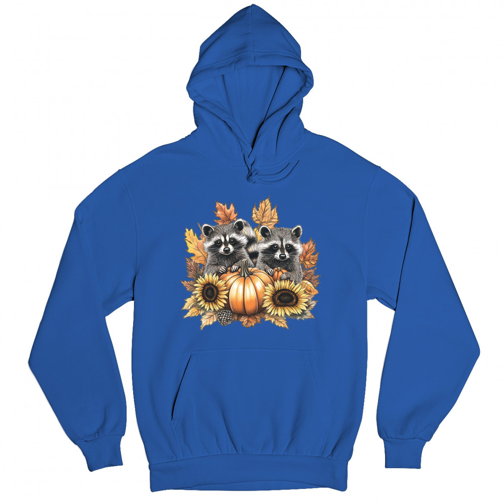 Rustic autumn raccoon design with pumpkins and sunflowers. Perfect for Thanksgiving, pumpkin patch days, farmhouse harvest, and woodland fall fashion.