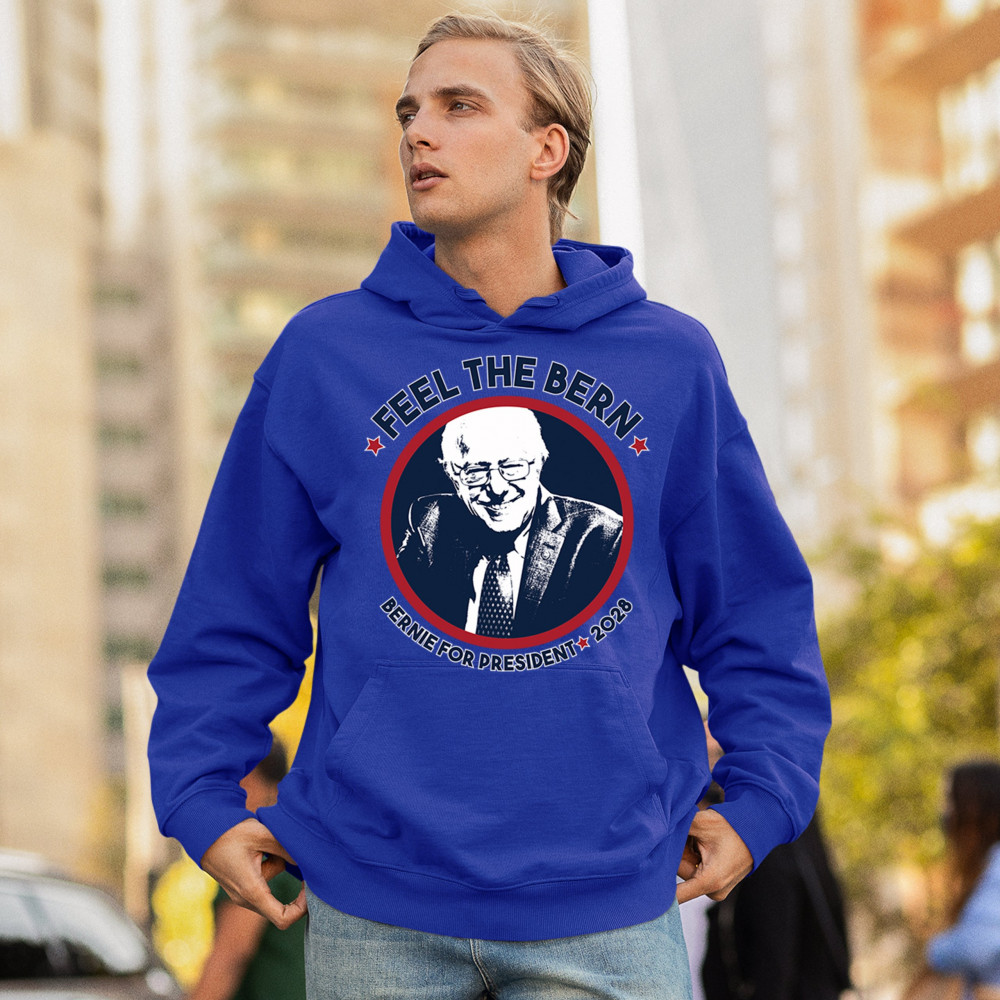 Show your commitment to democratic reform with this "Feel the Bern – Bernie for President 2028" design. Featuring Bernie Sanders’ portrait and patriotic colors, it’s perfect for political events, marches, or campaign volunteering. Wear it with pride at rallies, protests, or voter registration drives to back the progressive movement.