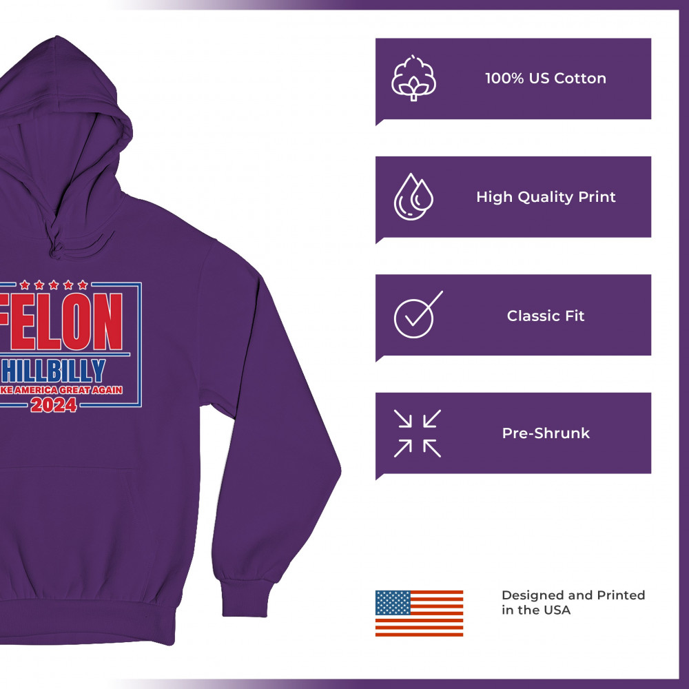 FELON HILLBILLY TRUMP MAGA 2024 sweatshirt 47 president vote red usa hoodie purple