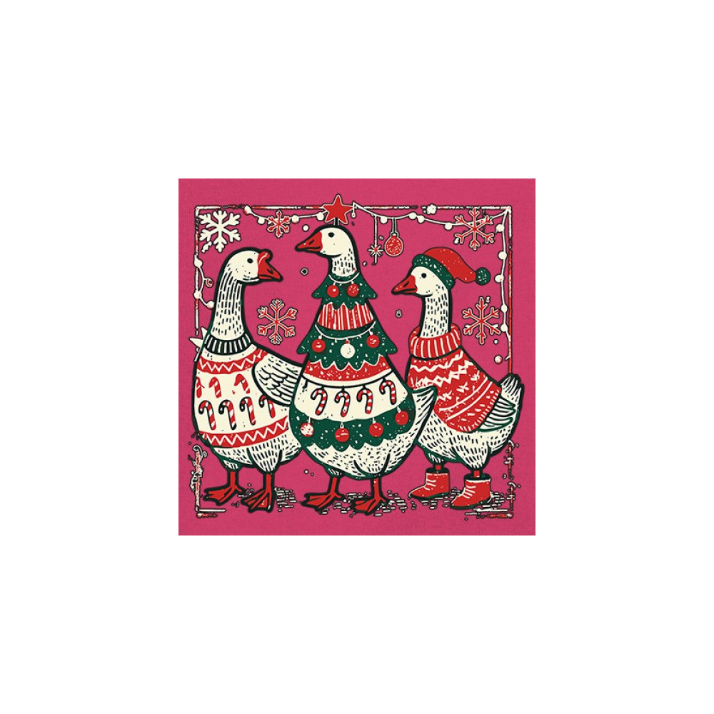 This festive goose Christmas design blends holiday humor, winter charm, and playful farm-animal personality. Featuring three geese dressed in seasonal patterns, it’s ideal for holiday parties, family gatherings, Christmas morning photos, barnyard lovers, and anyone looking for a fun seasonal graphic with cheerful holiday spirit.