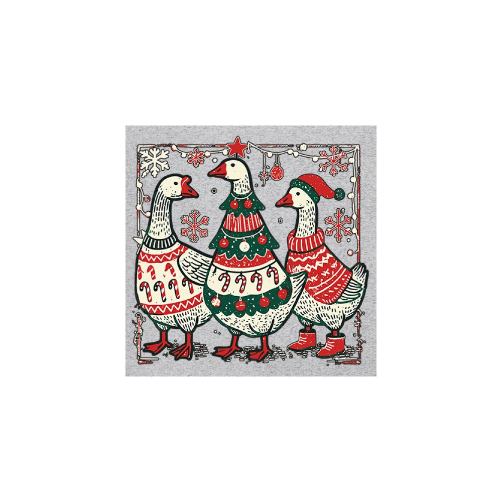 This festive goose Christmas design blends holiday humor, winter charm, and playful farm-animal personality. Featuring three geese dressed in seasonal patterns, it’s ideal for holiday parties, family gatherings, Christmas morning photos, barnyard lovers, and anyone looking for a fun seasonal graphic with cheerful holiday spirit.