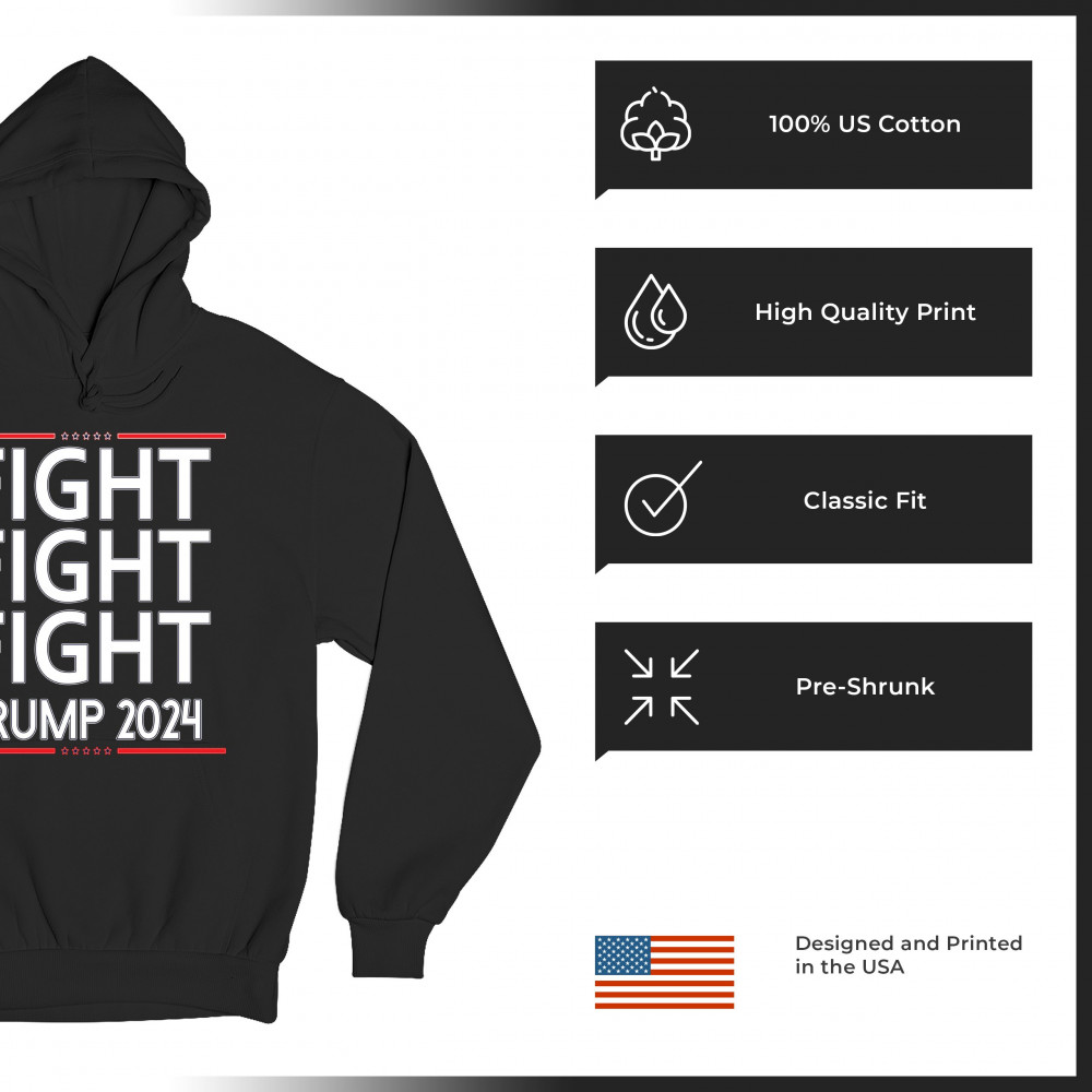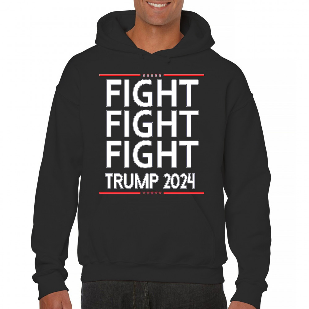 Show your Trump 2024 support with this bold "Fight Fight Fight" design. Perfect for rallies and everyday wear. Stand with America!