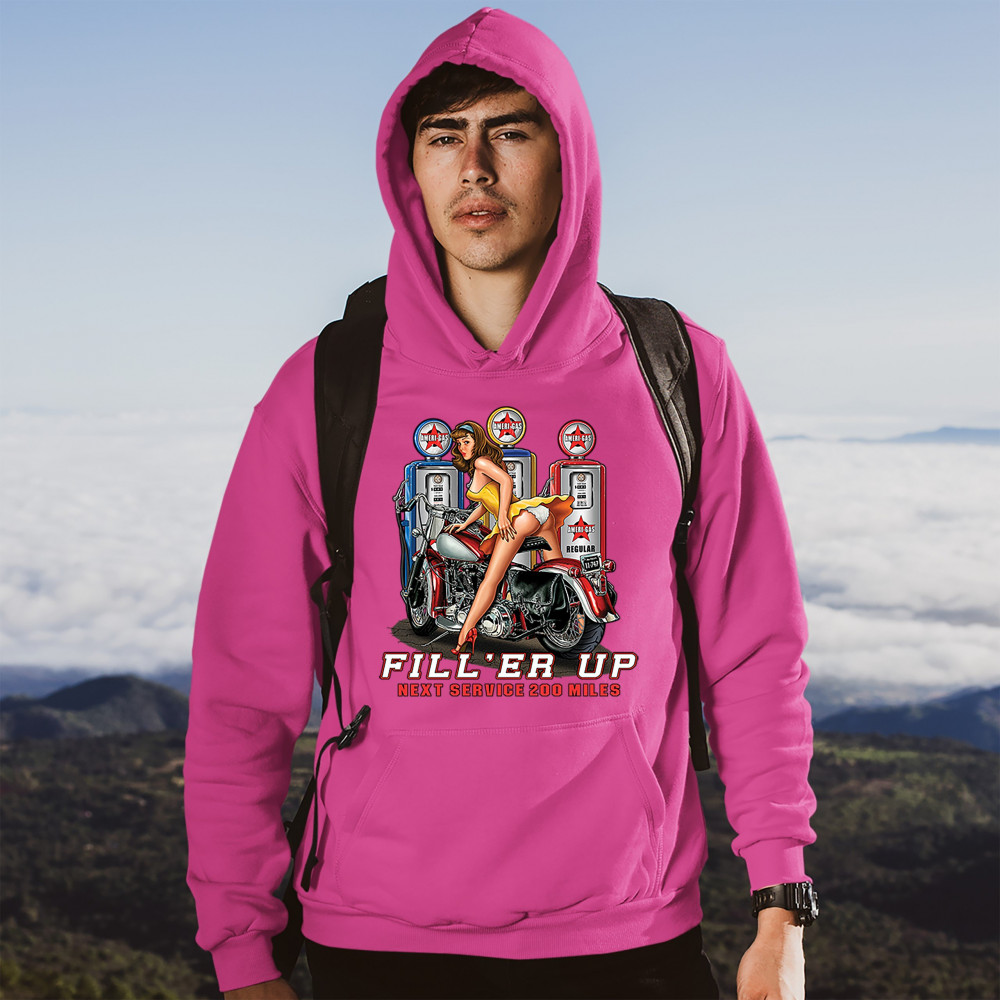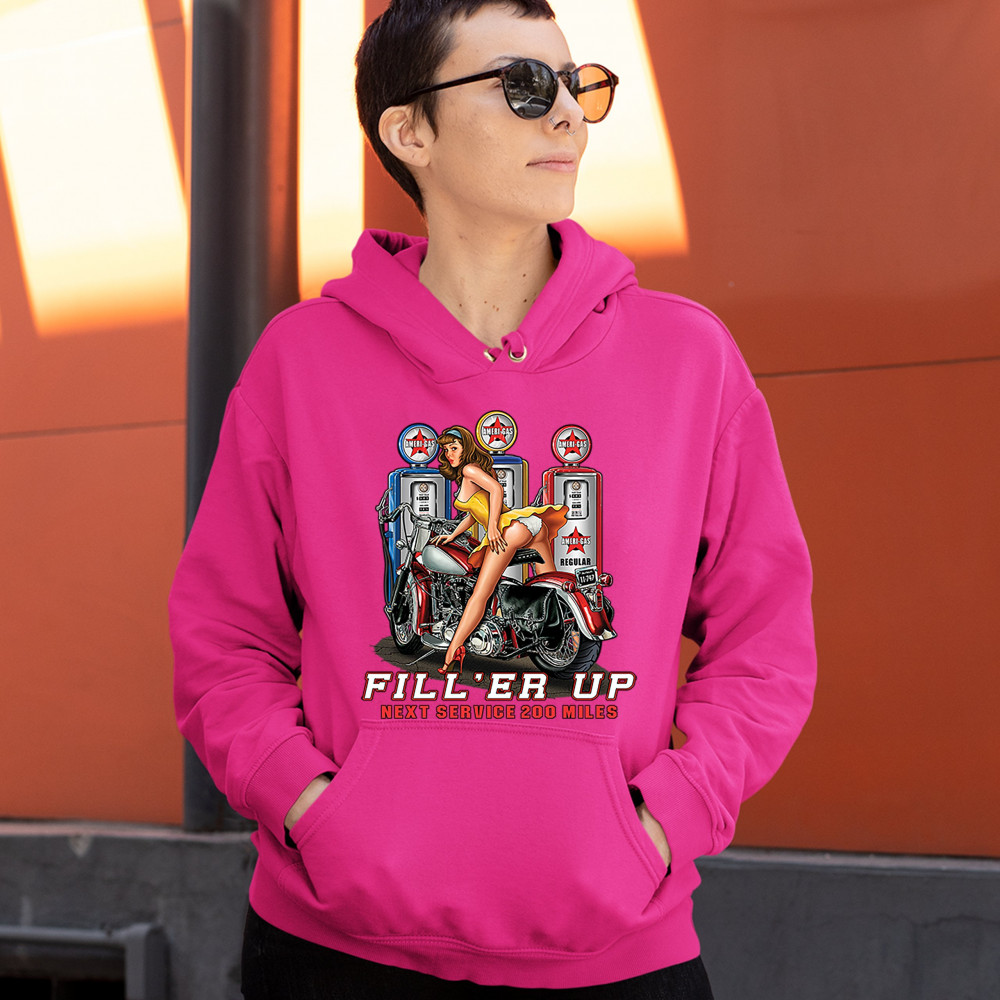 FILL 'ER UP sweatshirt sexy pin-up girl biker rider live to ride hoodie pink