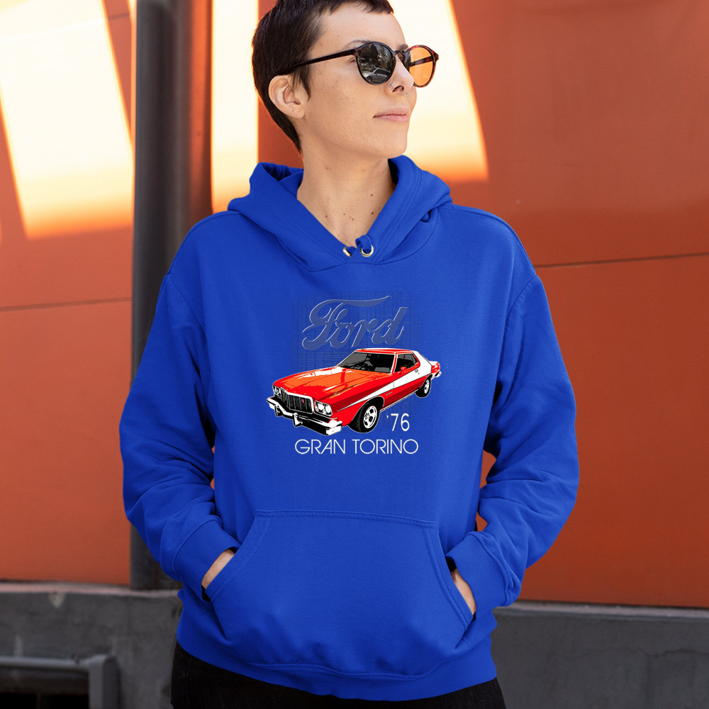 FORD '76 GRAN TORINO sweatshirt 1976 american muscle car licensed hoodie royal blue