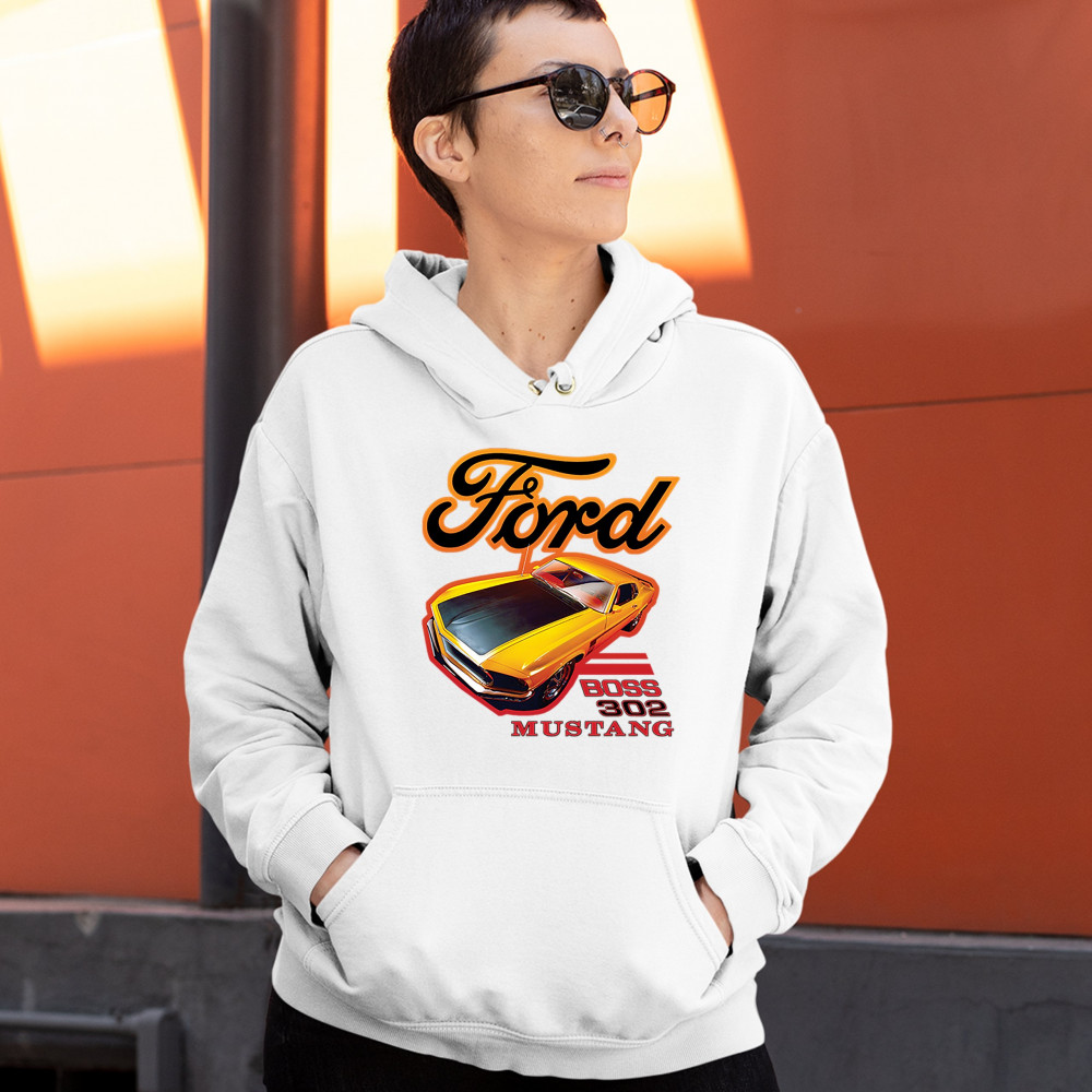 FORD BOSS 302 MUSTANG sweatshirt vintage american muscle car licensed hoodie white