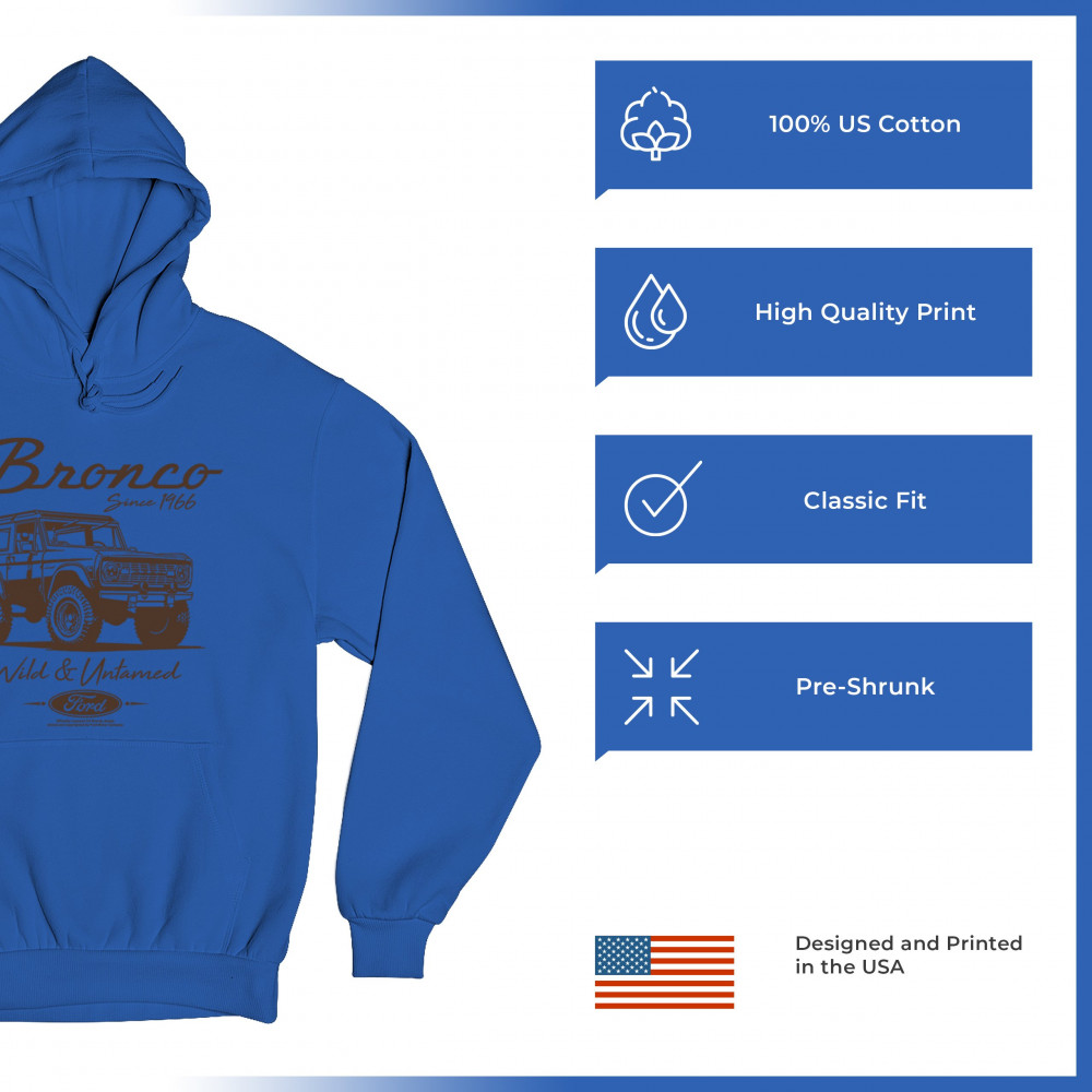 Discover the perfect gift for Ford Bronco enthusiasts with this officially licensed apparel. Highlighting "Bronco Since 1966" and "Wild and Untamed," the design captures the rugged charm of this iconic off-road SUV. Ideal for classic car lovers, outdoor explorers, and 4x4 adventurers, this vintage collectible represents the adventure-ready spirit of the Bronco.