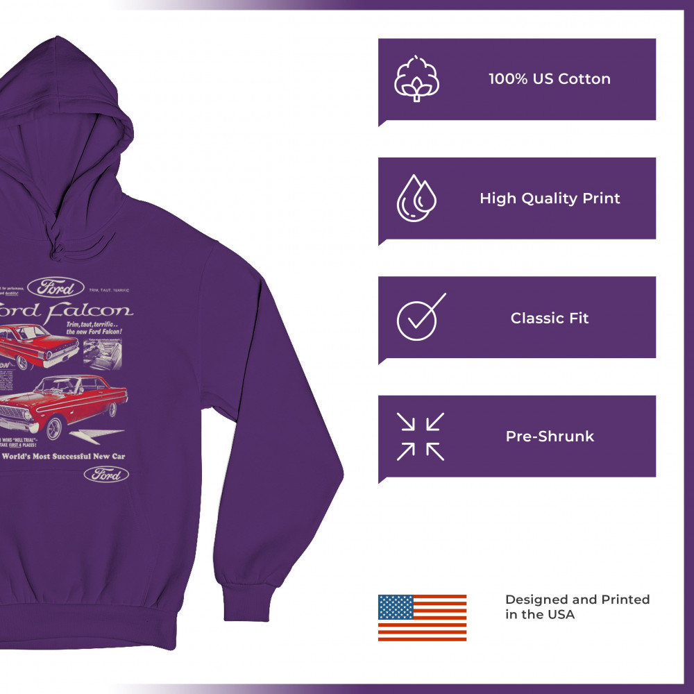 Ford Falcon retro poster design with 60s-70s styling. Great for classic car lovers, hot rod fans, gearheads, and vintage auto enthusiasts.