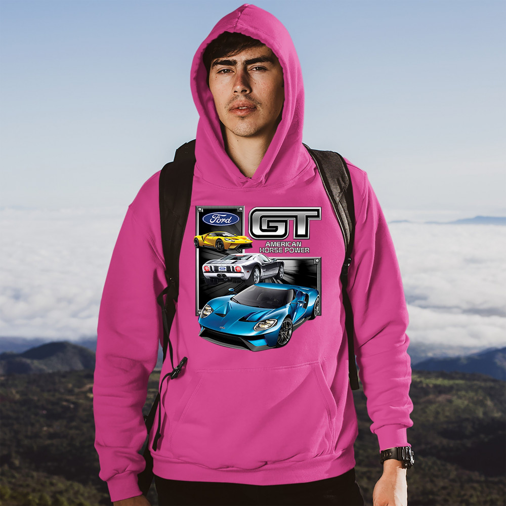 FORD GT AMERICAN HORSE POWER sweatshirt sports race car licensed hoodie pink