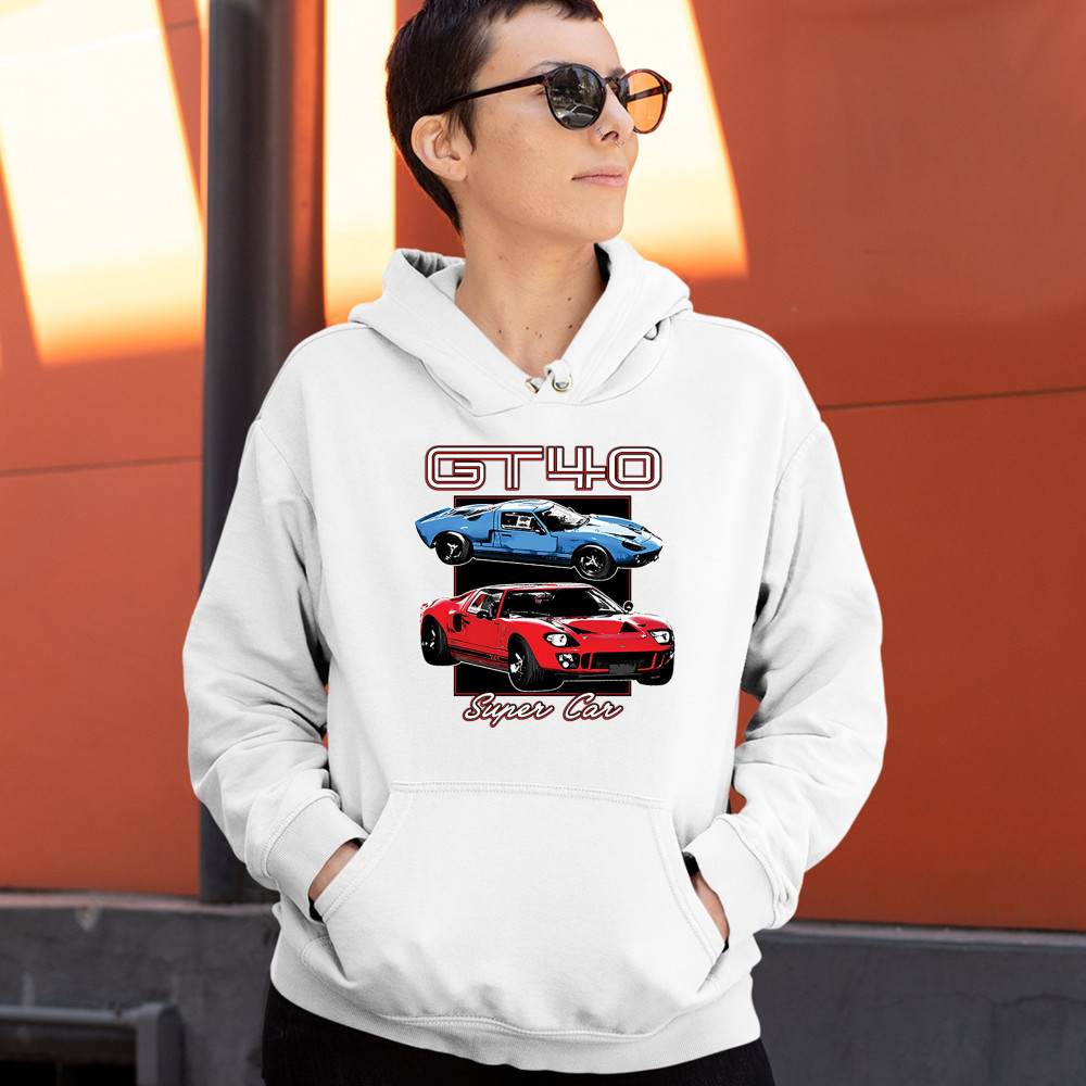 FORD GT40 sweatshirt american vintage super car retro licensed hoodie white