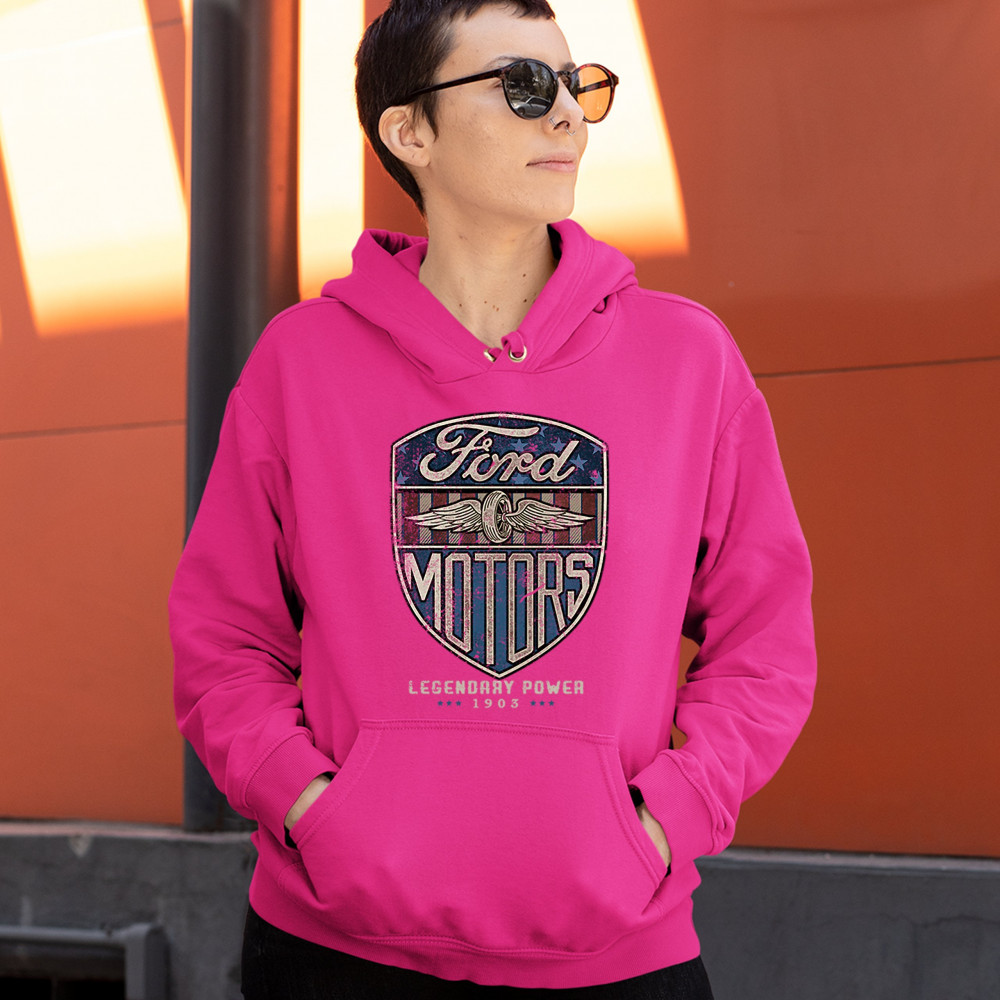 FORD MOTORS LEGENDARY POWER sweatshirt fomoco licensed automotive hoodie pink