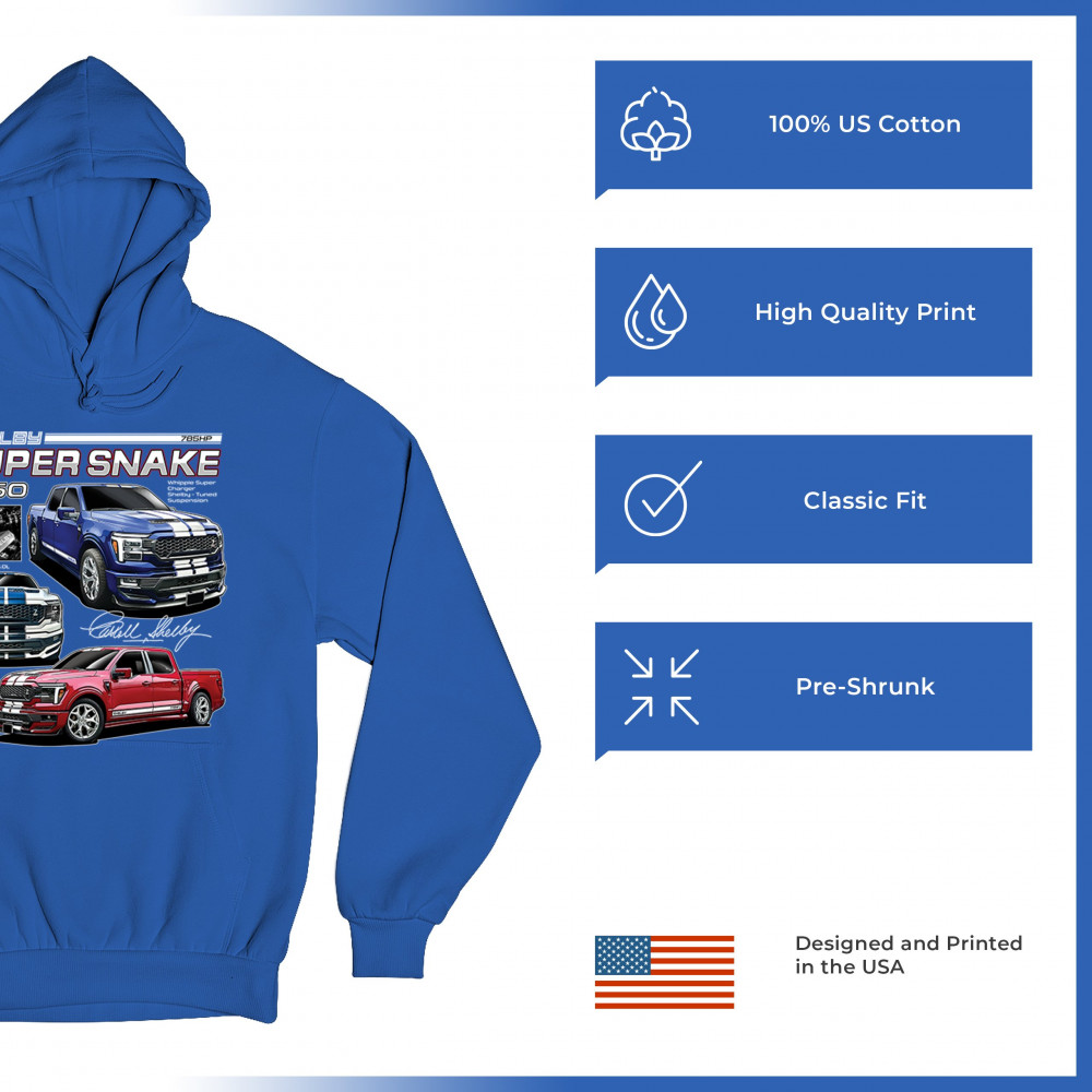 Ford Shelby Super Snake F-150 design featuring 785HP supercharged V8, Shelby pickup heritage, Shelby American truck power, and off-road muscle.