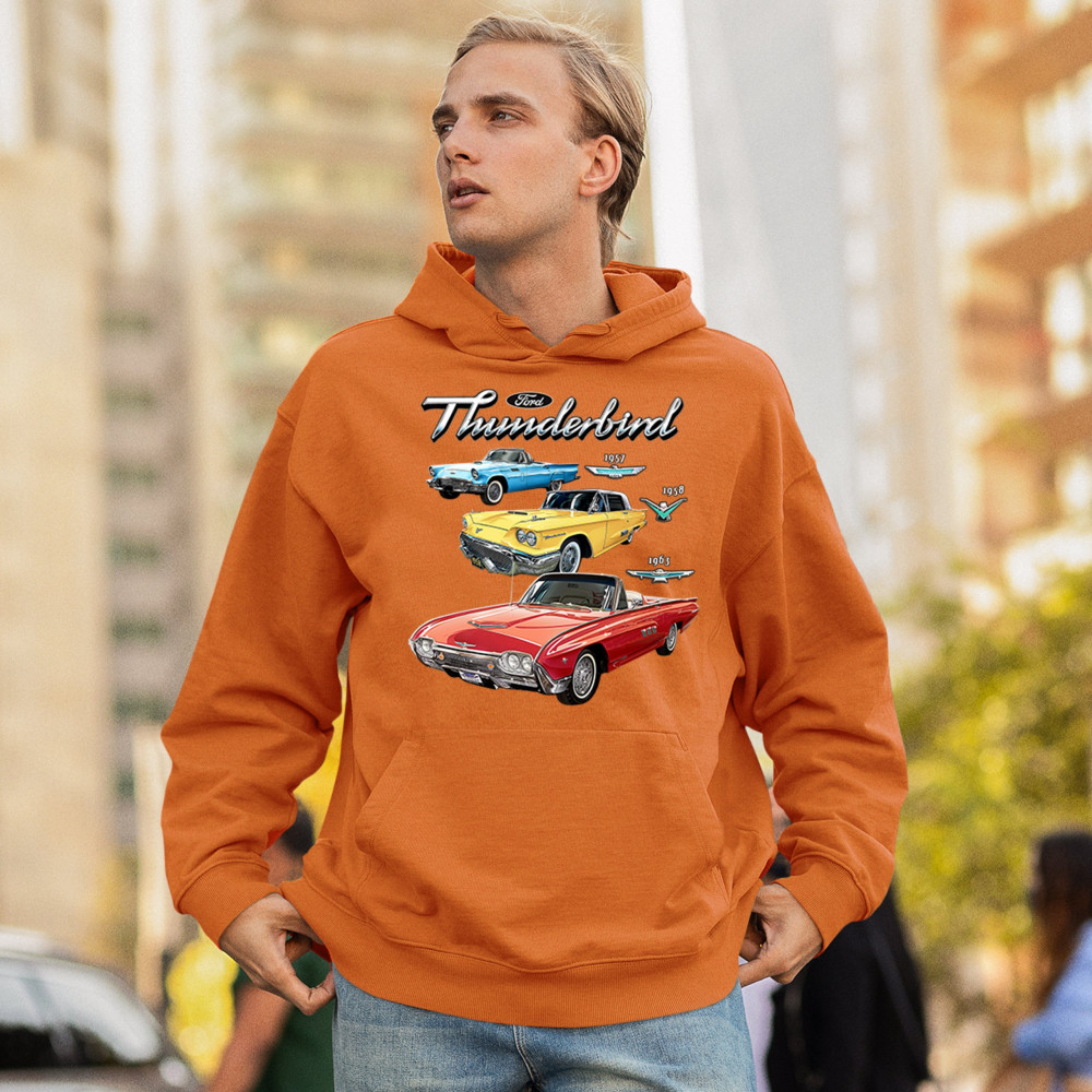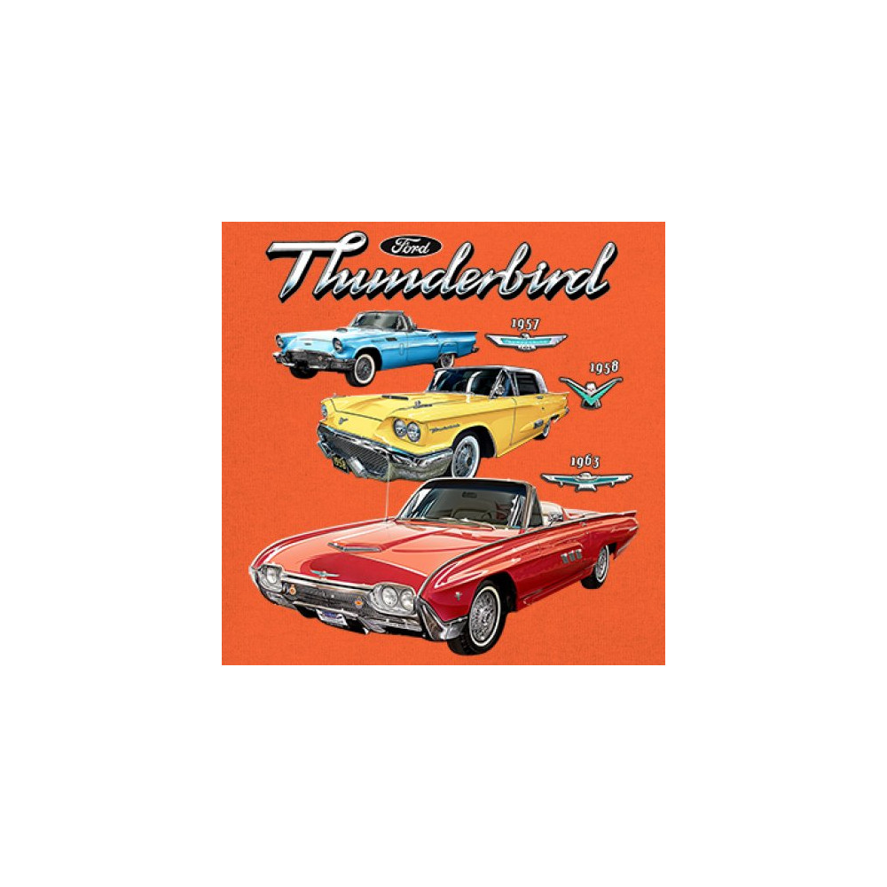 Iconic Ford Thunderbird design with 1957, 1958, and 1963 models. A vintage tribute for car collectors and American muscle fans.