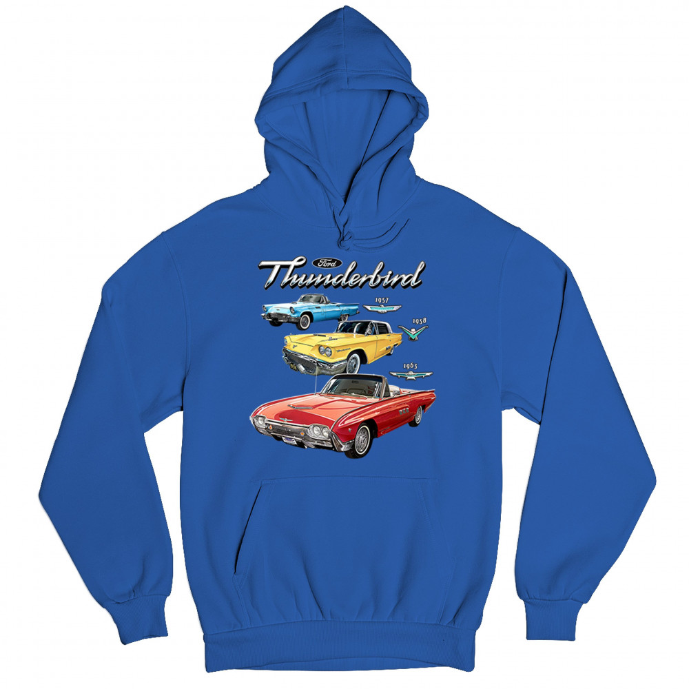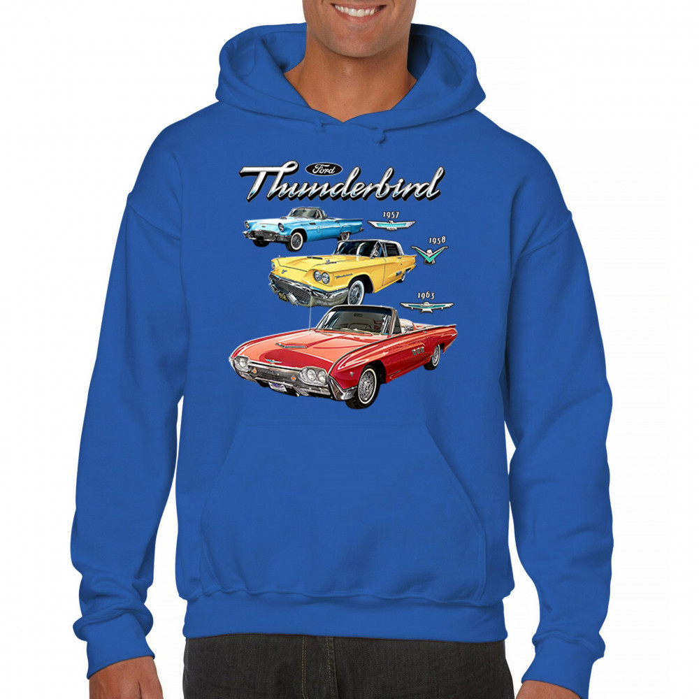 Iconic Ford Thunderbird design with 1957, 1958, and 1963 models. A vintage tribute for car collectors and American muscle fans.