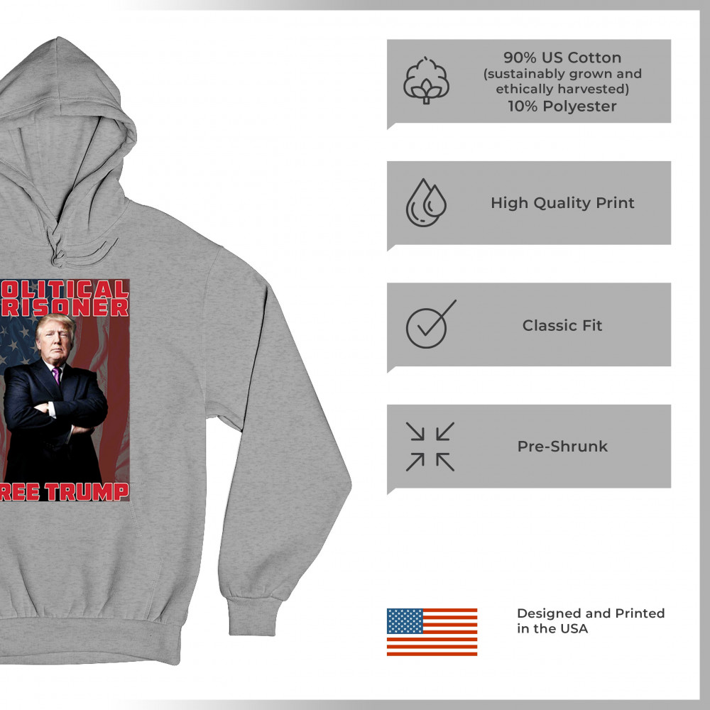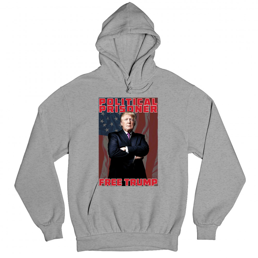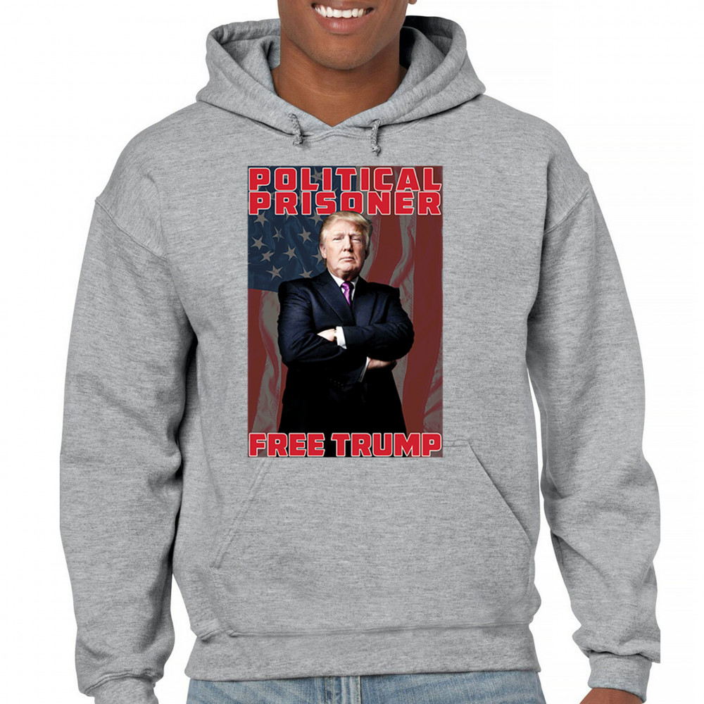 Show your support with the "Political Prisoner Free Trump" design, featuring Trump against an American flag. Perfect for conservative patriots and Trump supporters.